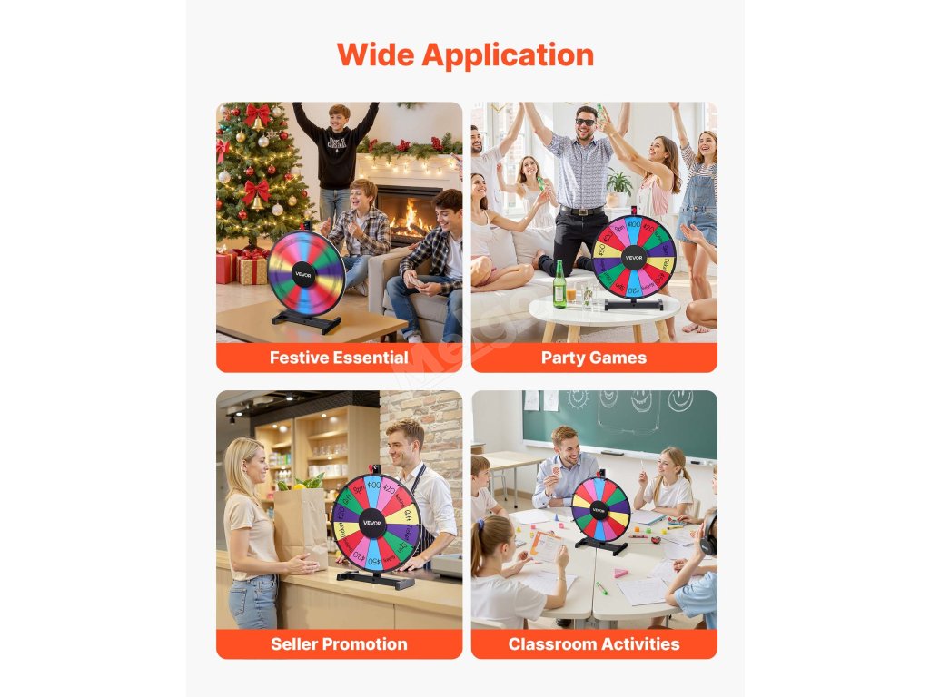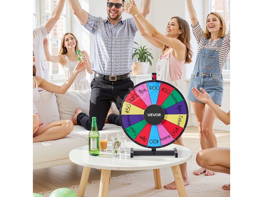 Přineste vzrušení na jakoukoli akci s naším univerzálním kolem s cenami! Díky přizpůsobitelným otvorům, plynulému otáčení a odolné konstrukci je ideální pro večírky, učebny, veletrhy a další akce. Je lehké a snadno se sestavuje, takže poskytuje nekonečnou zábavu pro všechny věkové kategorie.