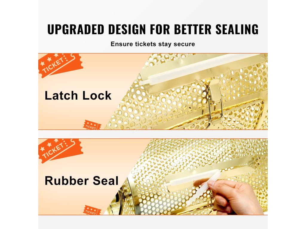 Náš pečlivě vyrobený buben na tombolové lístky kombinuje odolnost, eleganci a velkou kapacitu. Jeho velká kapacita snadno pojme množství losů nebo pingpongových míčků. Dutá konstrukce zajišťuje naprostou náhodnost a přehlednost v celém procesu tomboly.