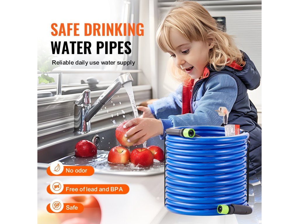 Vnitřní hadice z PVC je bezpečná pro pitnou vodu, neobsahuje olovo ani BPA a udržuje vodu čistou pro pití, koupání i zalévání rostlin.