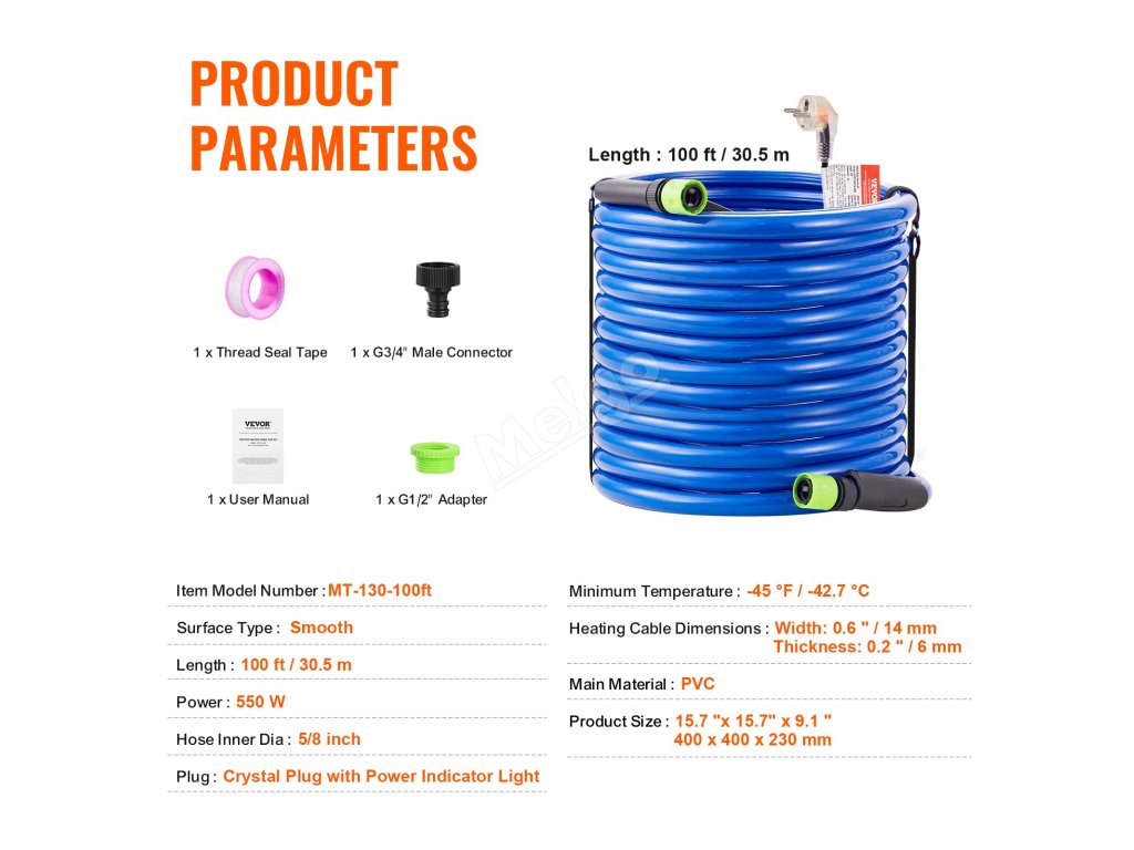 Během zimních nocí ve většině regionů běžné hadice kvůli nízkým teplotám zamrzají. S vyhřívanou hadicí na vodu VEVOR pro obytné vozy si můžete při kempování v obytném voze užívat běžného používání vody i při teplotách až -45 °C.