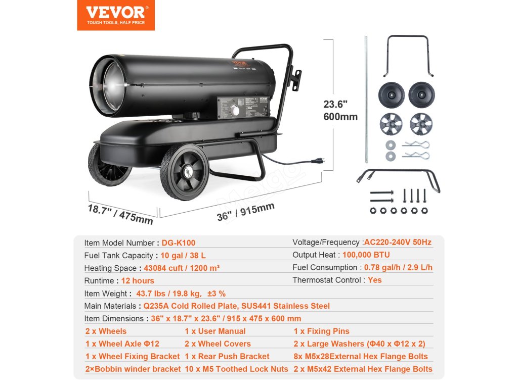 Torpédový ohřívač na naftu/kerosen 100000Btu s termostatem, 38L nádrž