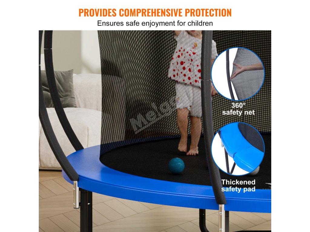 Díky 360° bezpečnostní síti, nárazuvzdorným nárazníkům a zesíleným bezpečnostním podložkám tlumícím nárazy poskytuje tato rekreační trampolína komplexní ochranu, která zabraňuje zranění dětí.