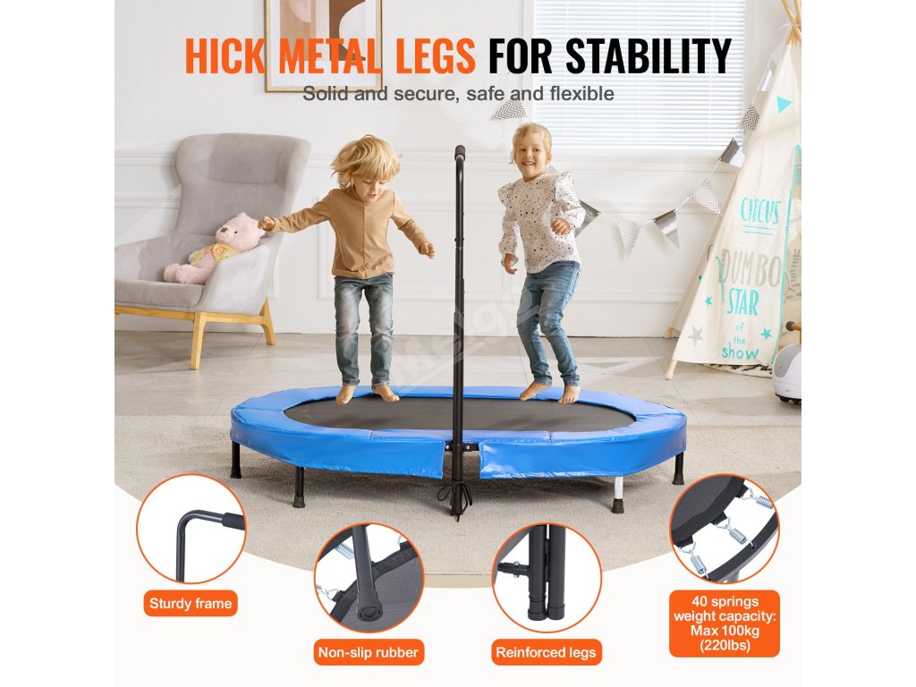Naše mini dětská trampolína pro batolata je vhodná pro všechny věkové kategorie a nabízí pět možností nastavení výšky od 38 do 45 palců, čímž účinně uvolňuje přirozenou energii dětí a poskytuje jim tu nejlepší rodinnou aktivitu.