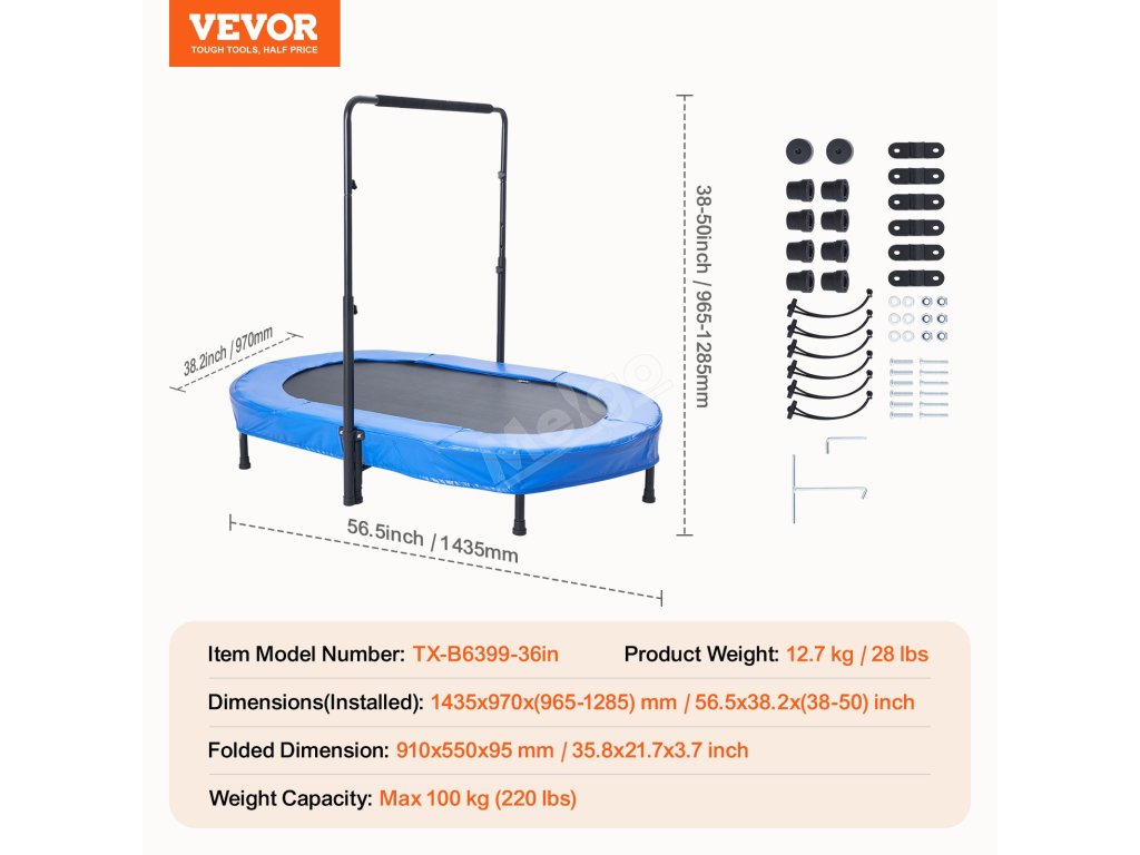 Trampolína 56×36 inch skládací s rukojetí, pro děti 3+ na doma i ven