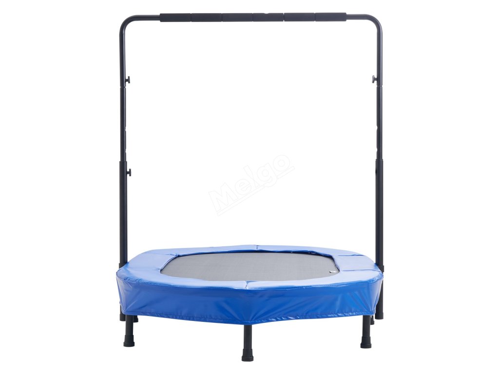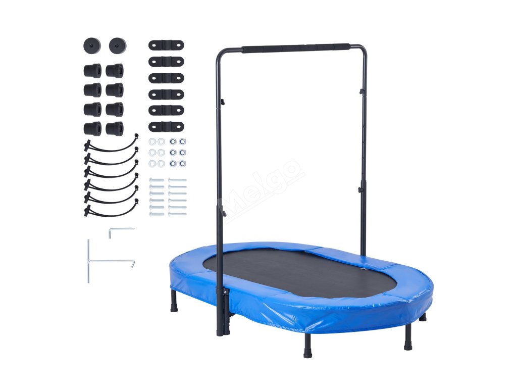 Trampolína na cvičení je vyrobena z odolného rámu, skákací podložky a podložky z PP, pružin z nerezové oceli, trubek na nohy s gumovou hlavou a rukojetí potažených pěnou, což zajišťuje robustnost a odolnost a zároveň snadné čištění a údržbu. Gumové podložky pod nohy zajišťují tlumení pro tichý provoz.