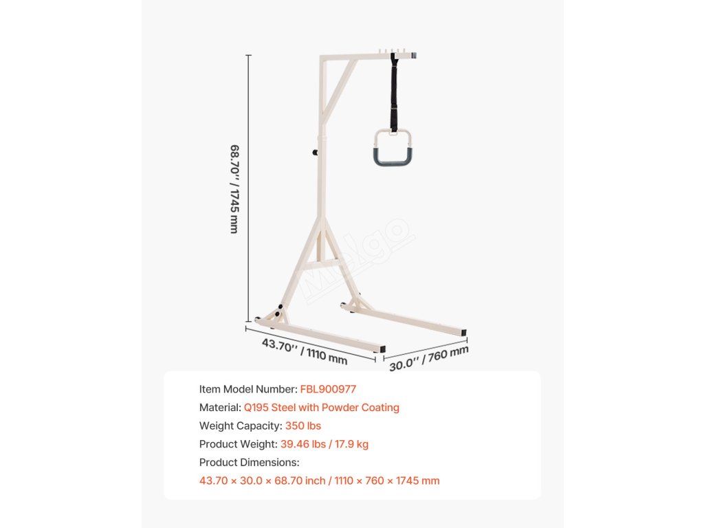 Tato podlahová hrazda je ideální pro seniory, pacienty upoutané na lůžko a osoby s omezenou pohyblivostí a poskytuje stabilní oporu pro bezproblémové sezení, přesun na invalidní vozík nebo úpravu polohy. Praktická a nezbytná pomůcka pro každodenní mobilitu a rehabilitační potřeby.