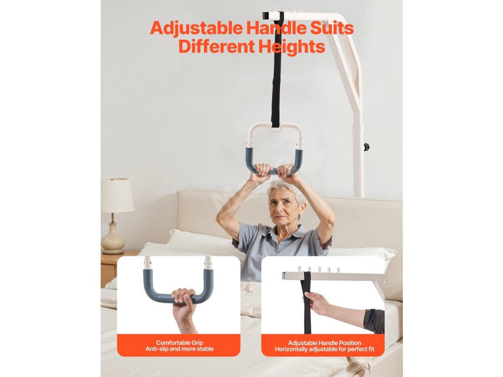 Trapezová tyč na postel, nastavitelná, 2 kolečka, 300LBS nosnost