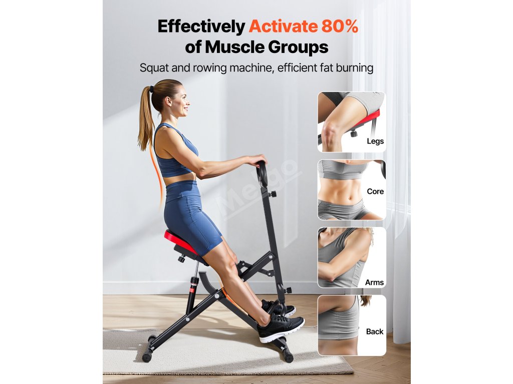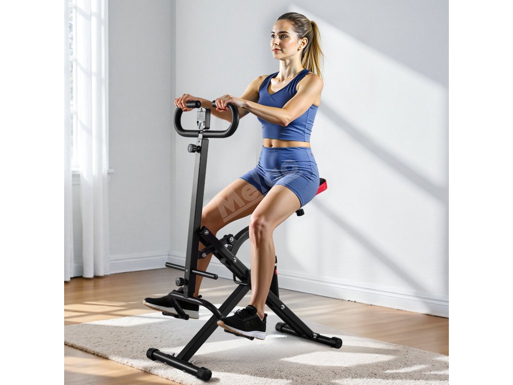 Trenažér na dřepy a veslování, skládací, 12-stupňový odpor na zadek