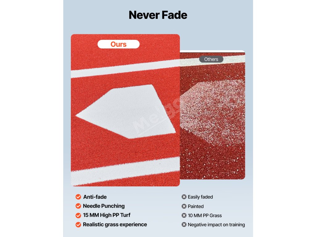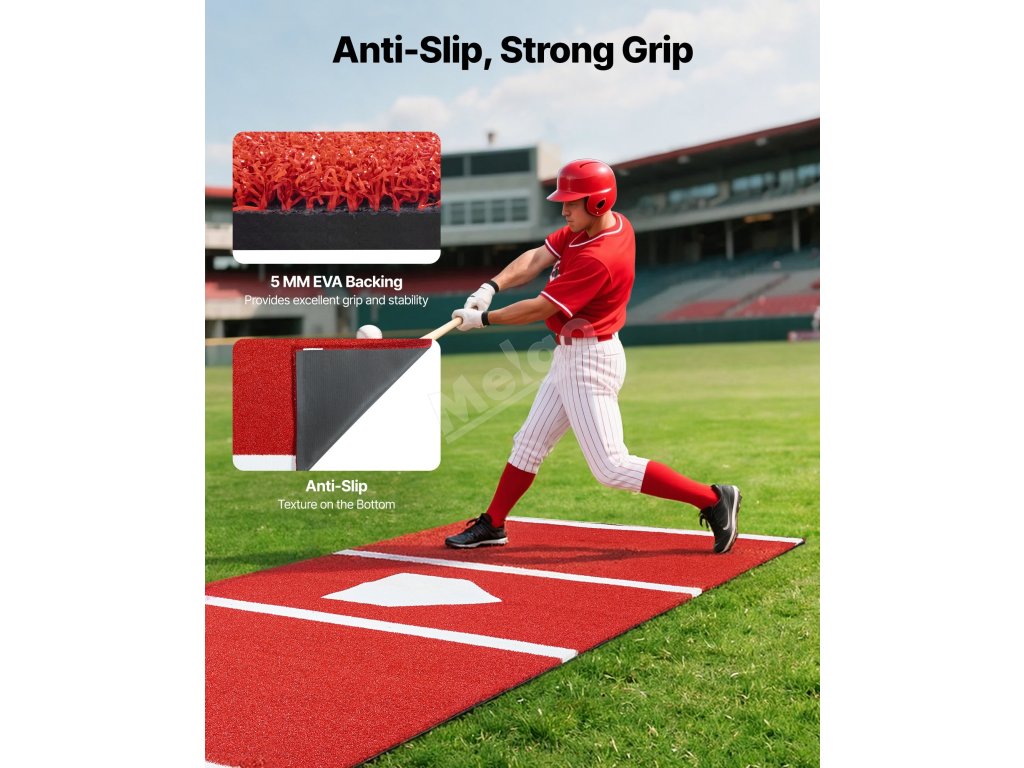 Tato odpalovací rohož má 5 mm podklad EVA, který zvyšuje tření, zabraňuje uklouznutí a chrání podlahu před poškrábáním a poškozením. Je vhodná pro rychlý i pomalý trénink odpalování a slouží jako užitečná pomůcka pro baseballový trénink.