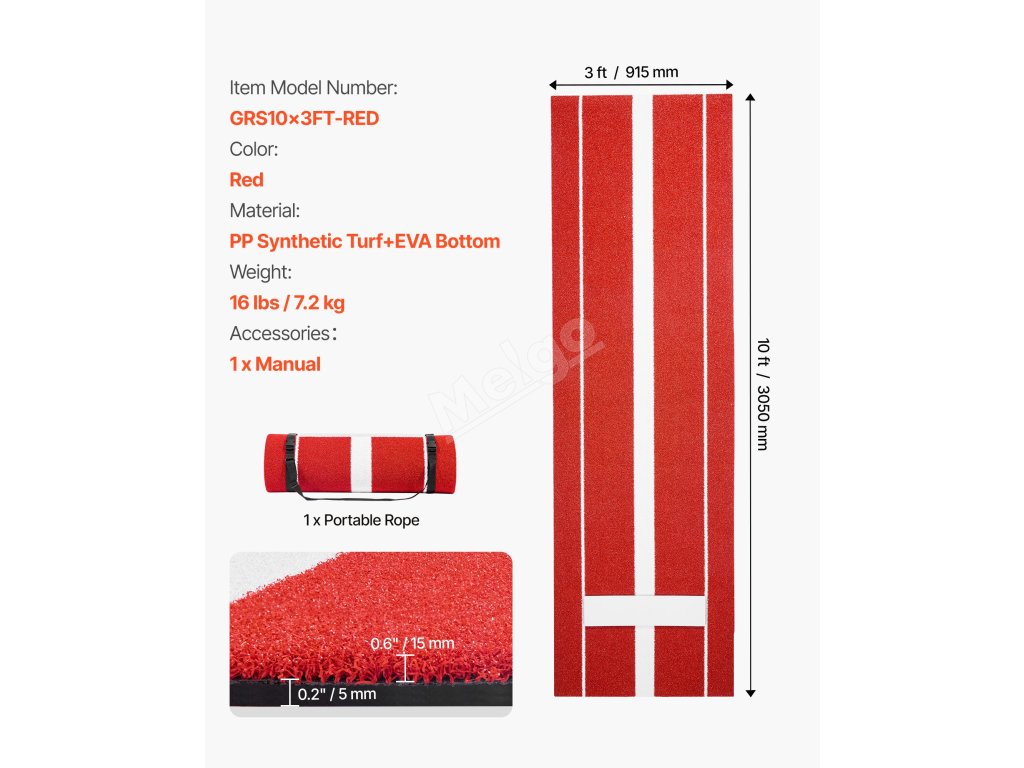 Tréninková rohož na softball 305×92cm, protiskluzová vrstva, červená