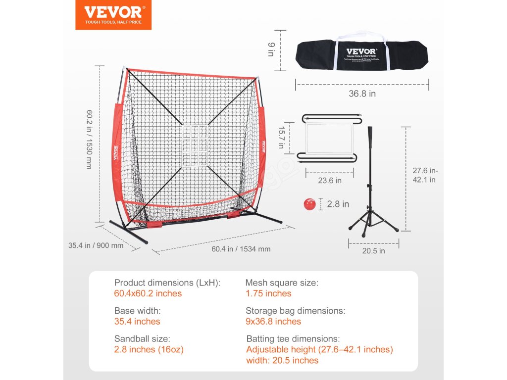 Tréninková síť 5×5 ft na baseball/softball s obloukovým rámem