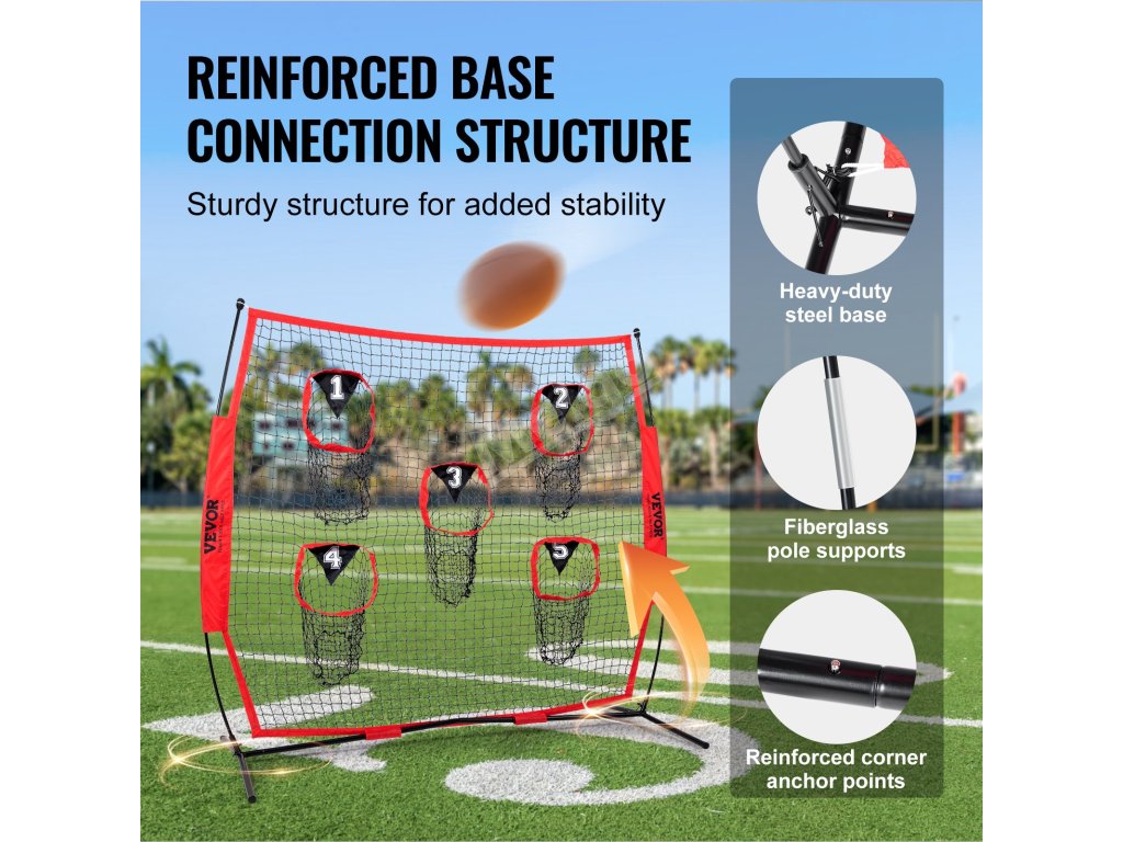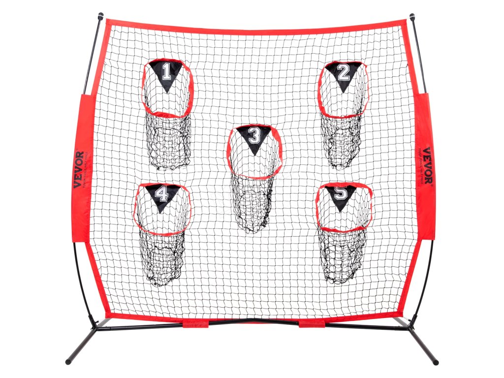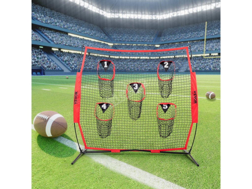 Tréninková fotbalová síť na házení na cíl má velkou síť 6 × 6 stop a 5 terčových kapes, které umožňují házet míč z různých směrů a vzdáleností.