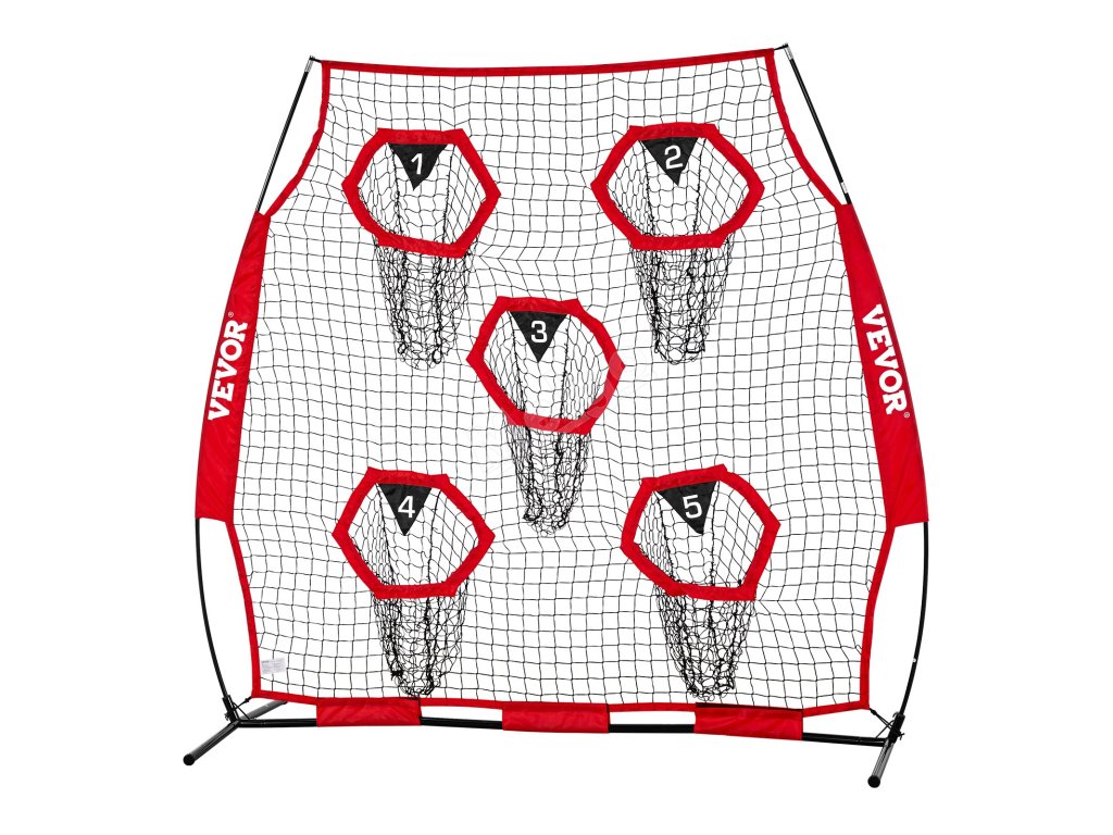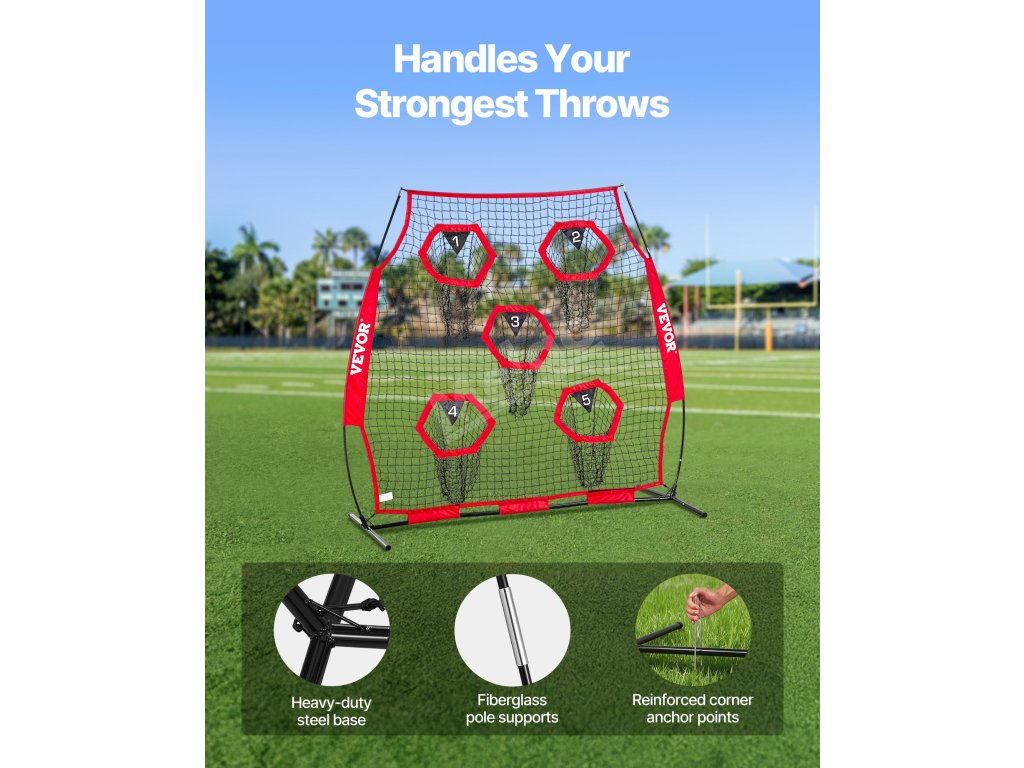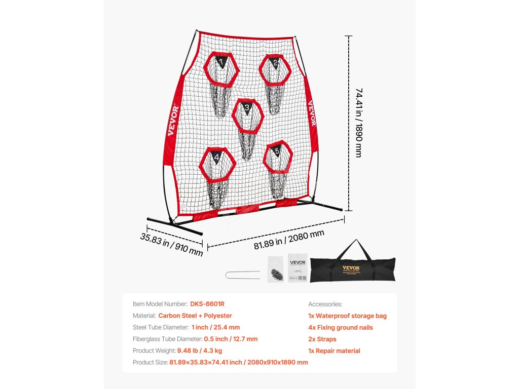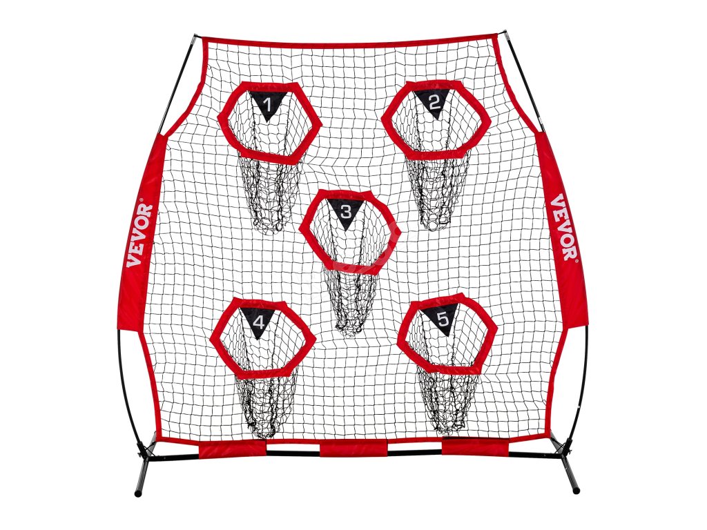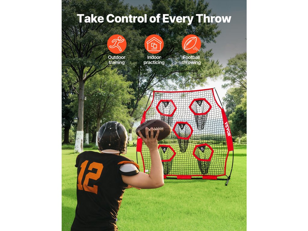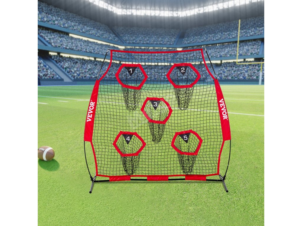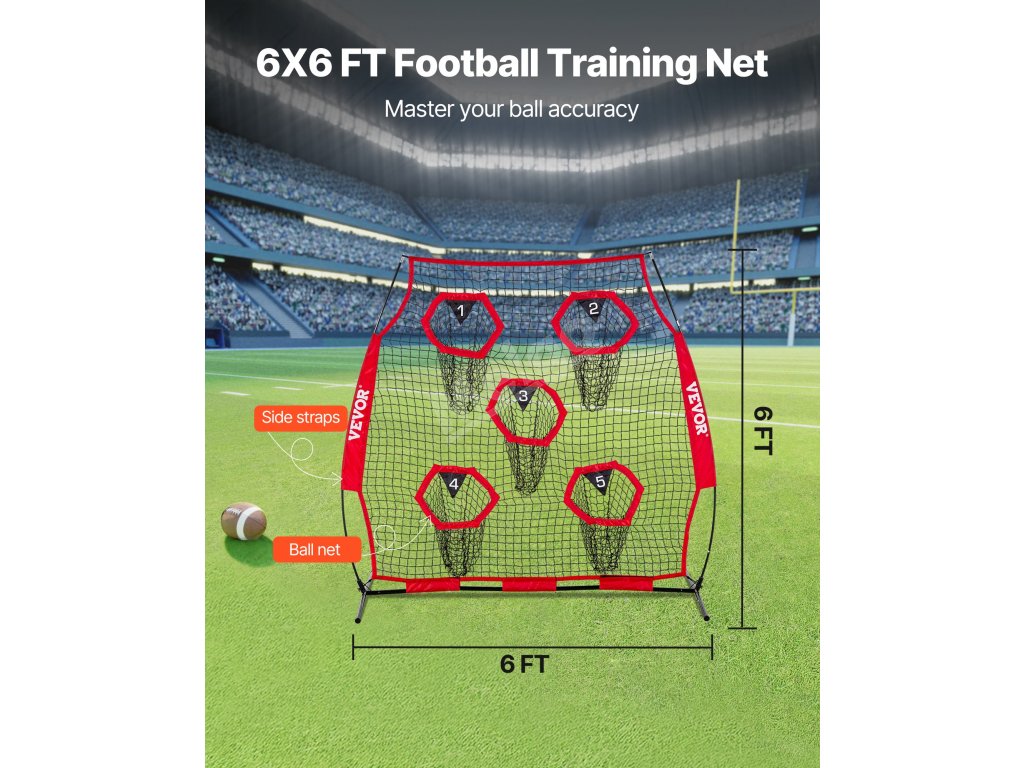 Tréninková fotbalová síť na házení na cíl má velkou síť 6 × 6 stop a 5 terčových kapes, které umožňují házet míč z různých směrů a vzdáleností.