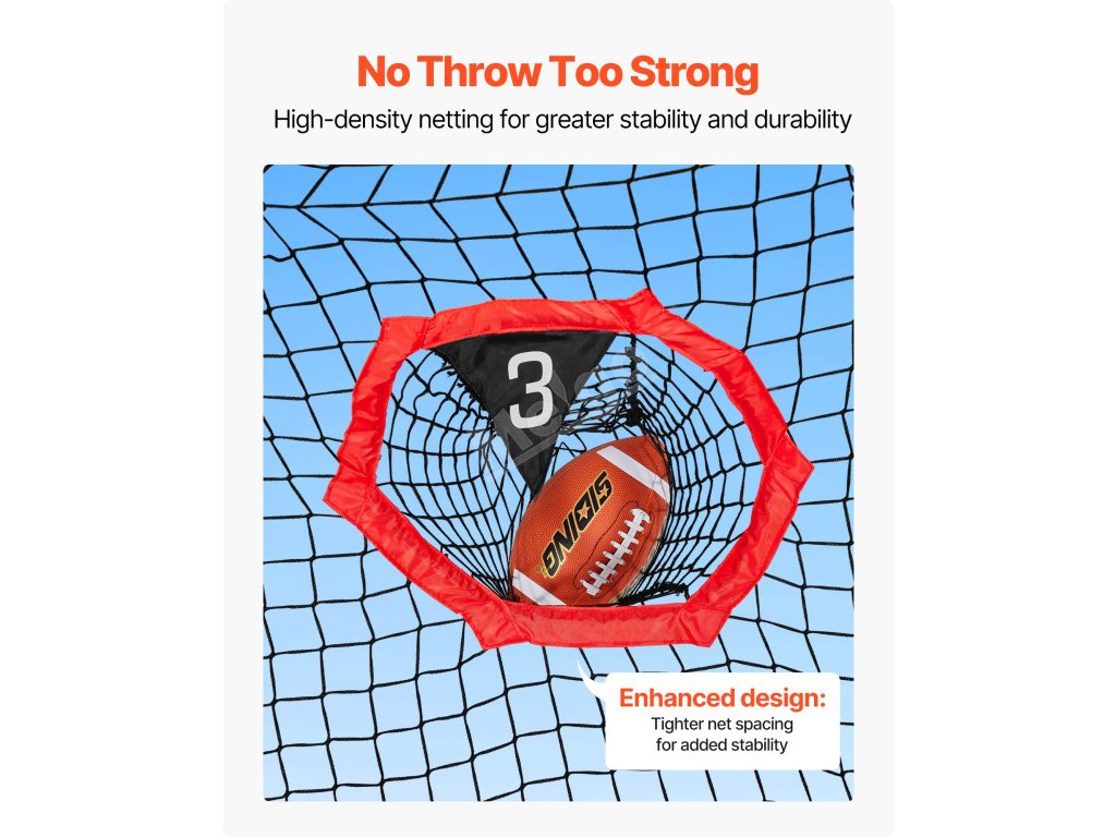 Díky konstrukci s vysokou hustotou a velikosti otvoru 1,75 palce/44,5 mm je tato fotbalová házecí síť kompatibilní s cvičením přihrávek.