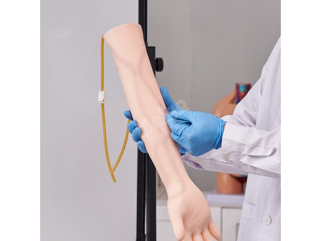 Při zavádění jehly do této intravenózní paže pocítíte realističnost, výraznou kapku a autentický návrat krve po úspěšné venepunkci. Je to jako cvičit na skutečné paži!
