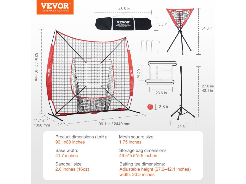 Trénovací síť na baseball a softball 7×7 ft, přenosná, s rámem