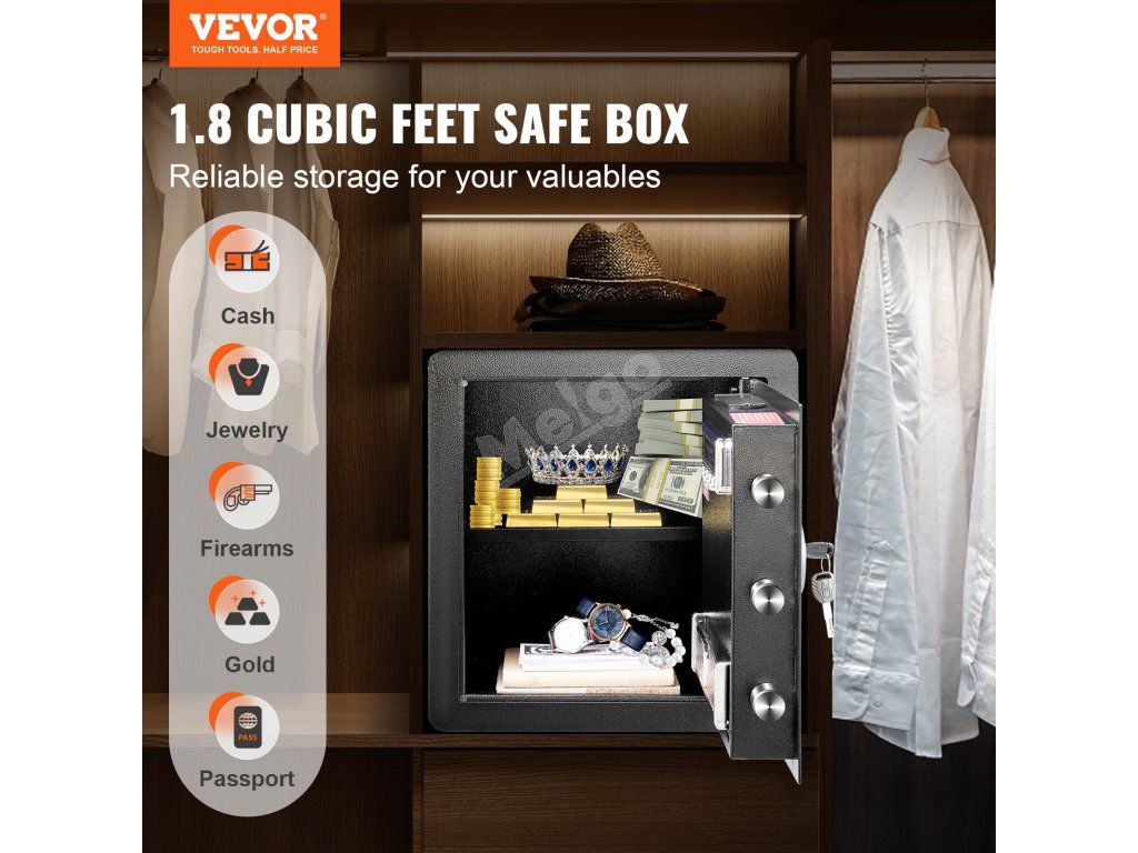 Trezor VEVOR ponúka vynikajúcu hodnotu za svoju cenu. Jeho vlastnosti a konštrukcia sú porovnateľné s drahšími modelmi. Jeho prijateľná cena ho však robí dostupným pre širšie publikum. Cenovo výhodné riešenie bezpečného uloženia. Získate spoľahlivé a odolné úložisko. Môžete získať spoľahlivý výrobok za prijateľnú cenu. Ich cenová dostupnosť neohrozuje ich kvalitu ani bezpečnosť. Tento trezor je investíciou do ochrany vašich cenností. Cenovo výhodný charakter tohto trezora ho robí atraktívnym. Získate vysokokvalitný výrobok za zlomok ceny iných trezorov!
