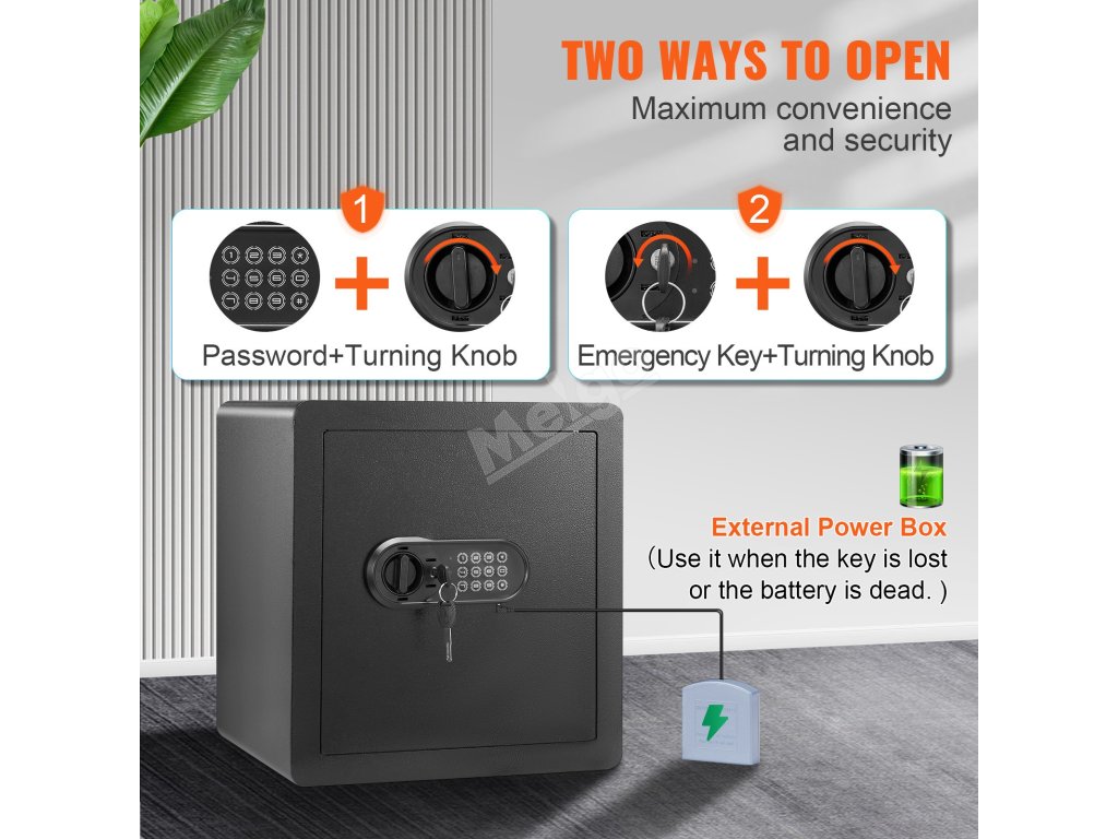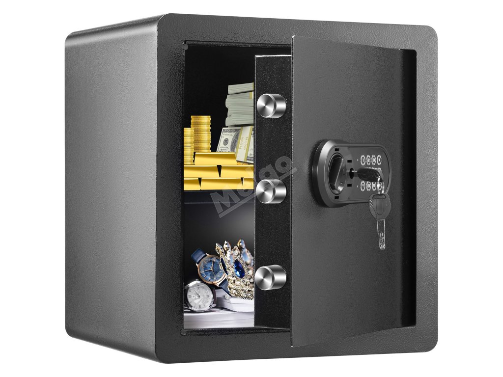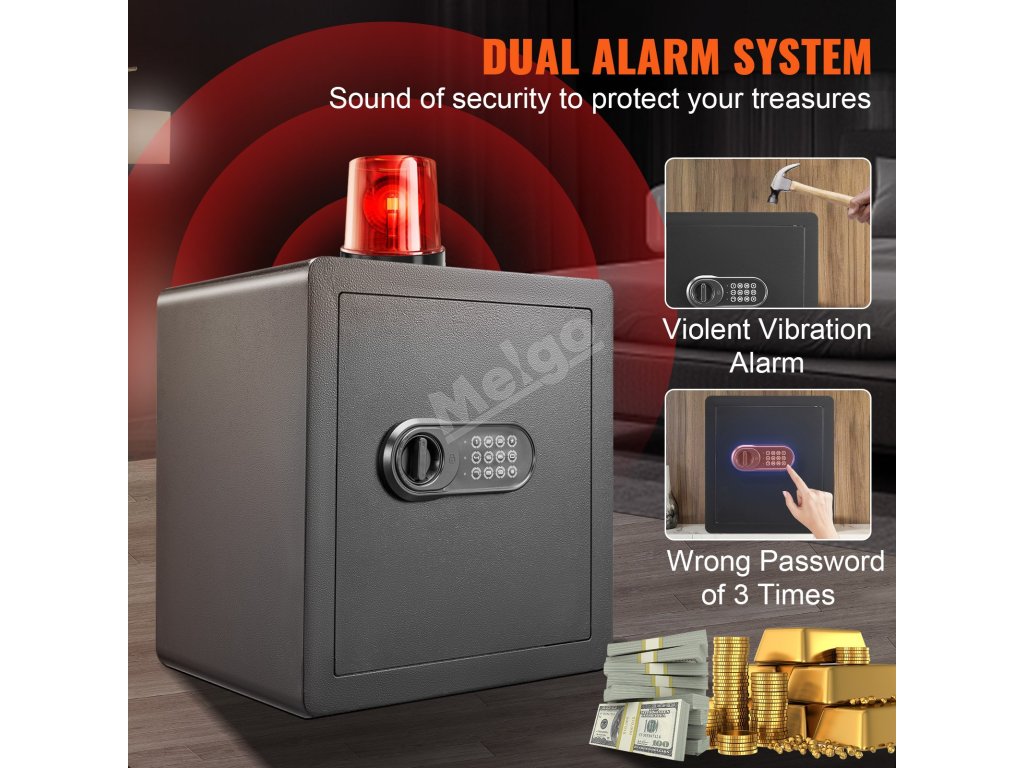 Tento trezor je vyrobený na bezpečné uloženie vašich cenností. Môžete do neho uložiť hotovosť, zlato a dôležité dokumenty. Jeho veľká kapacita ponúka dostatok priestoru pre všetky vaše dôležité predmety. Pevná oceľová konštrukcia trezora zaručuje odolnosť. Je spoľahlivou voľbou na domáce alebo kancelárske použitie. Bezpečný uzamykací systém poskytuje pokoj na duši. Tento trezor sa ľahko nastavuje a používa; vyniká ako základný bezpečnostný nástroj. Náš kompaktný dizajn umožňuje jednoduché umiestnenie v akejkoľvek miestnosti. Trezor sa dodáva aj s predvŕtanými otvormi na montáž na stenu. Táto funkcia zvyšuje jeho bezpečnosť a sťažuje jeho premiestnenie alebo krádež. Samotný trezor VEVOR je vynikajúcou investíciou na ochranu vašich vecí.