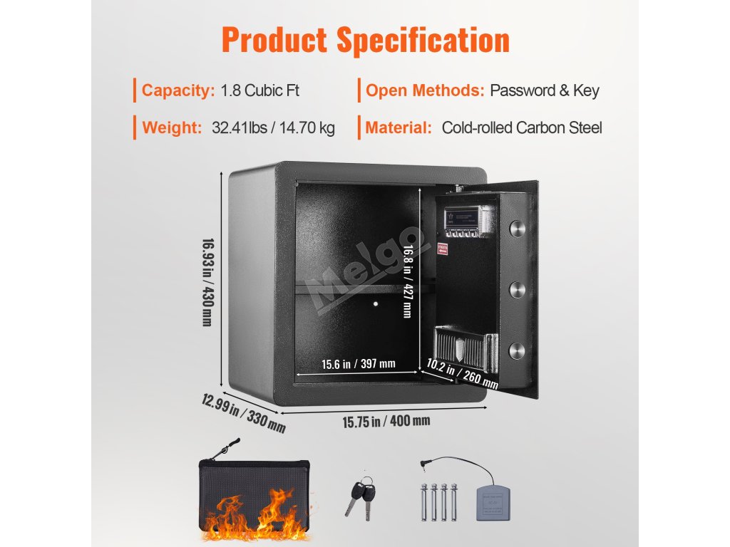 Napriek tomu, že trezor VEVOR nie je ohňovzdorný, poskytuje významnú ochranu pred požiarom. Jeho oceľová konštrukcia a hrubé dvere poskytujú bariéru proti intenzívnemu teplu. Táto vlastnosť je kľúčová na ochranu dôležitých dokumentov a cenností. Hoci nemusí dlhodobo odolávať extrémnym teplotám, jeho vlastnosti poskytujú väčšiu ochranu ako bežné kovové trezory. V prípade mimoriadne citlivých predmetov by ste mali zvážiť použitie ohňovzdorných tašiek. Trezor VEVOR je vynikajúcim doplnkom vašich protipožiarnych opatrení, pretože poskytuje "bezpečné miesto" pre vaše cenné predmety počas mimoriadnych udalostí. Investícia do tohto trezora zaručuje ochranu vašich najdôležitejších predmetov.