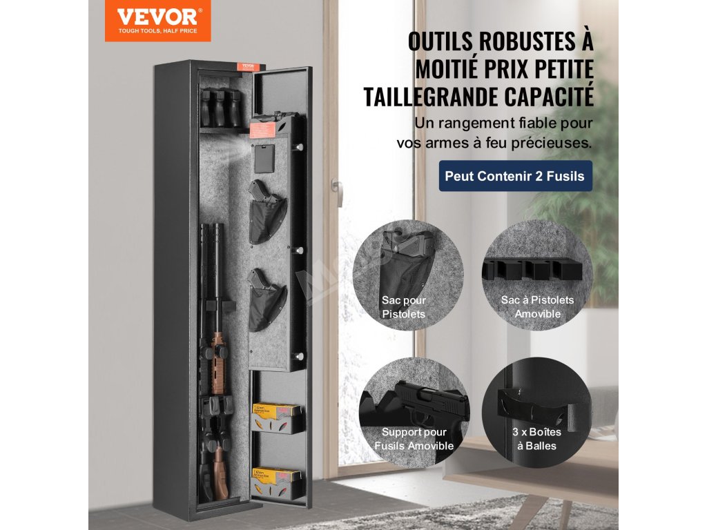Chraňte své blízké a cenné zbraně pomocí skříně na zbraně VEVOR - dokonalého řešení pro majitele střelných zbraní. Díky pokročilým bezpečnostním prvkům a odolné konstrukci se můžete spolehnout, že vaše střelné zbraně budou vždy v dobrých rukou.