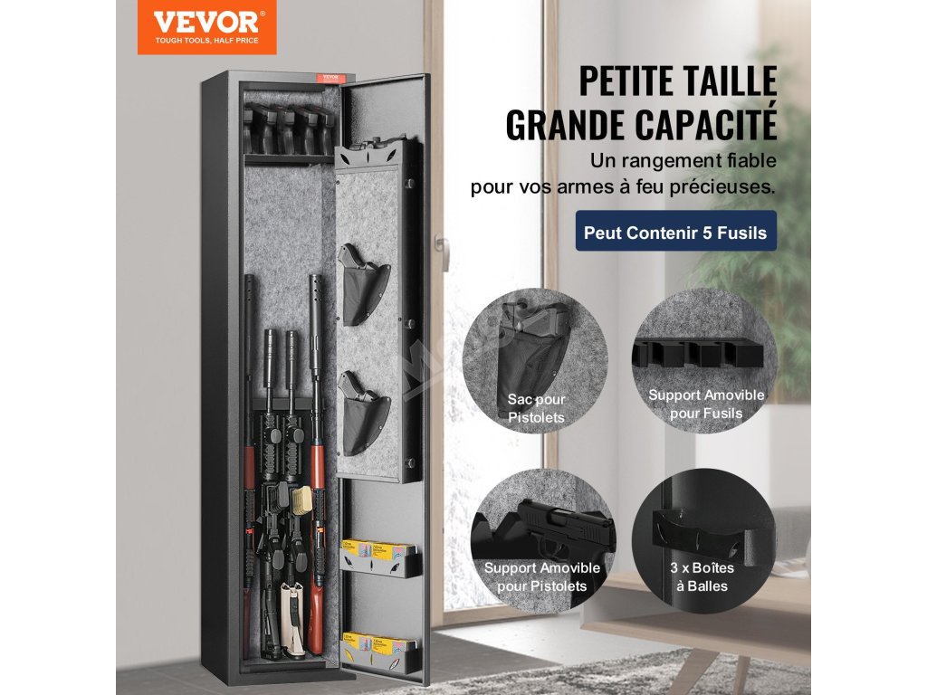 Chraňte své blízké a cenné zbraně pomocí skříně na zbraně VEVOR - dokonalého řešení pro majitele střelných zbraní. Díky pokročilým bezpečnostním prvkům a odolné konstrukci se můžete spolehnout, že vaše střelné zbraně budou vždy v dobrých rukou.