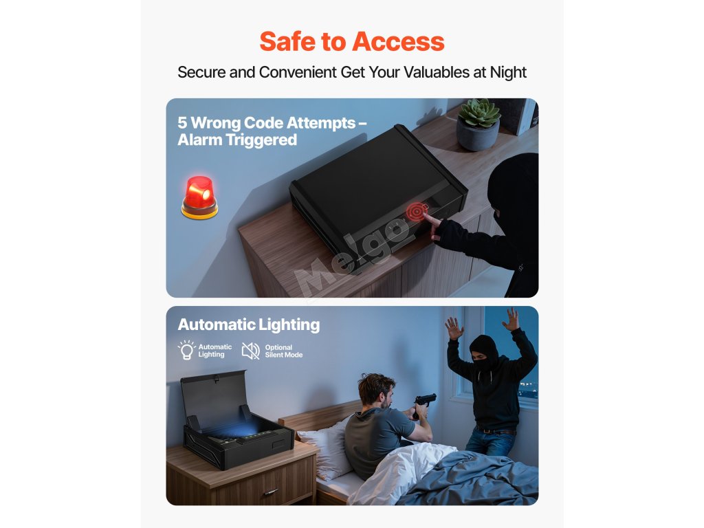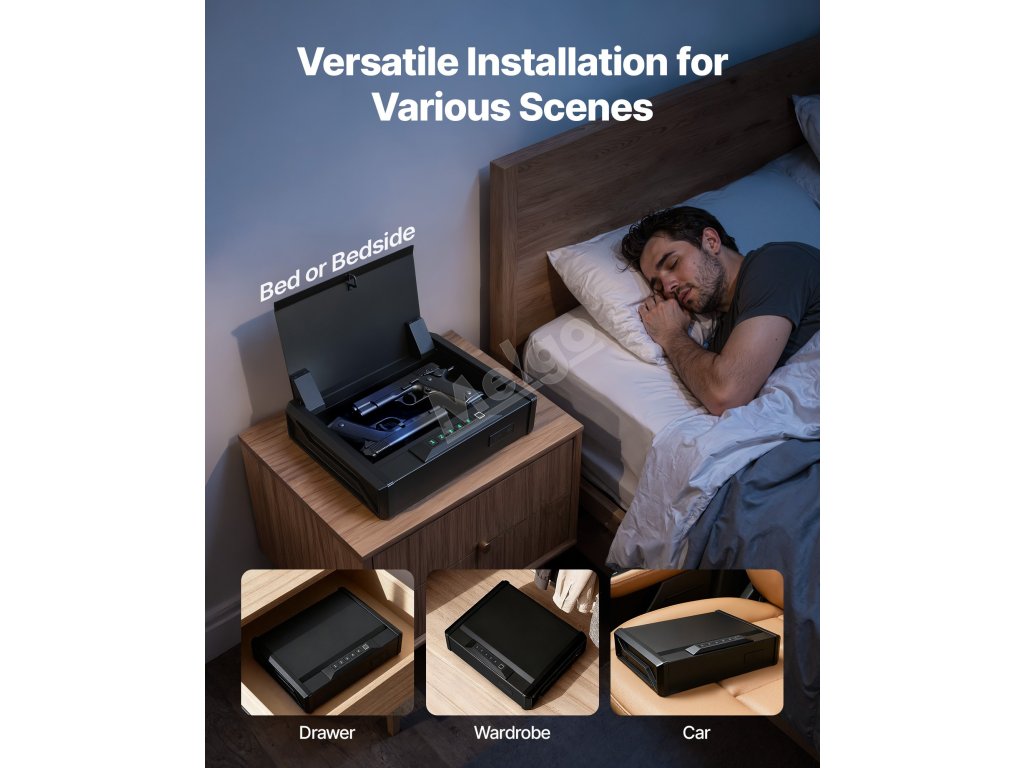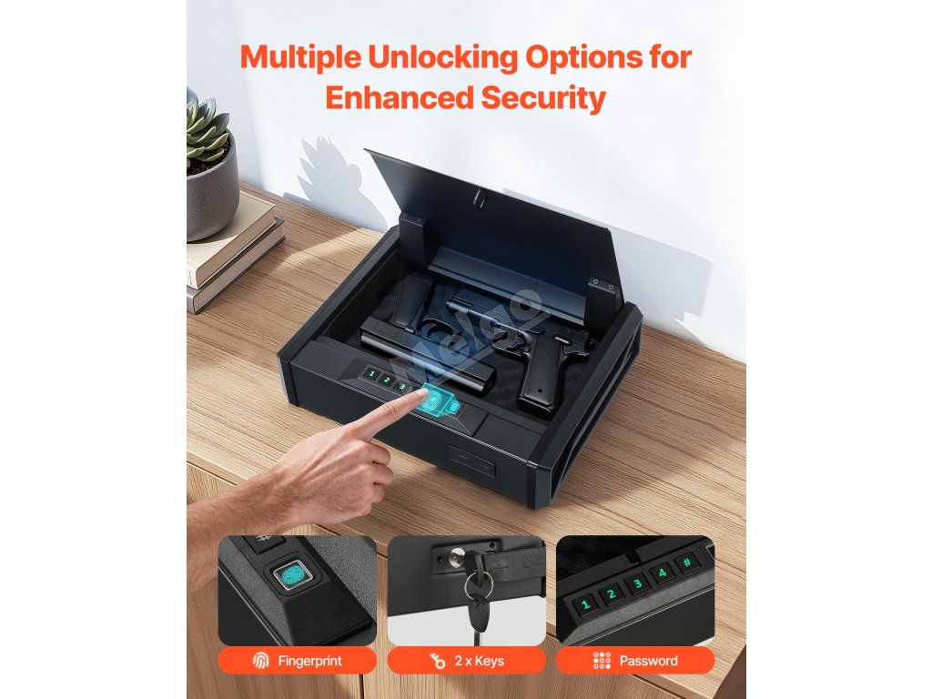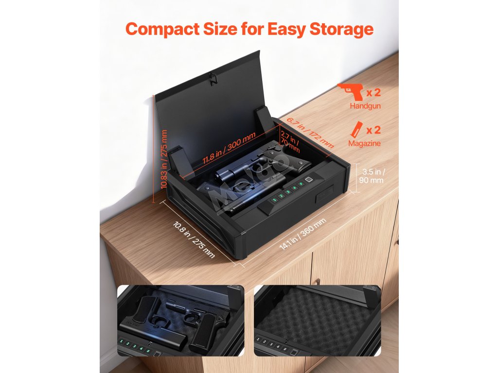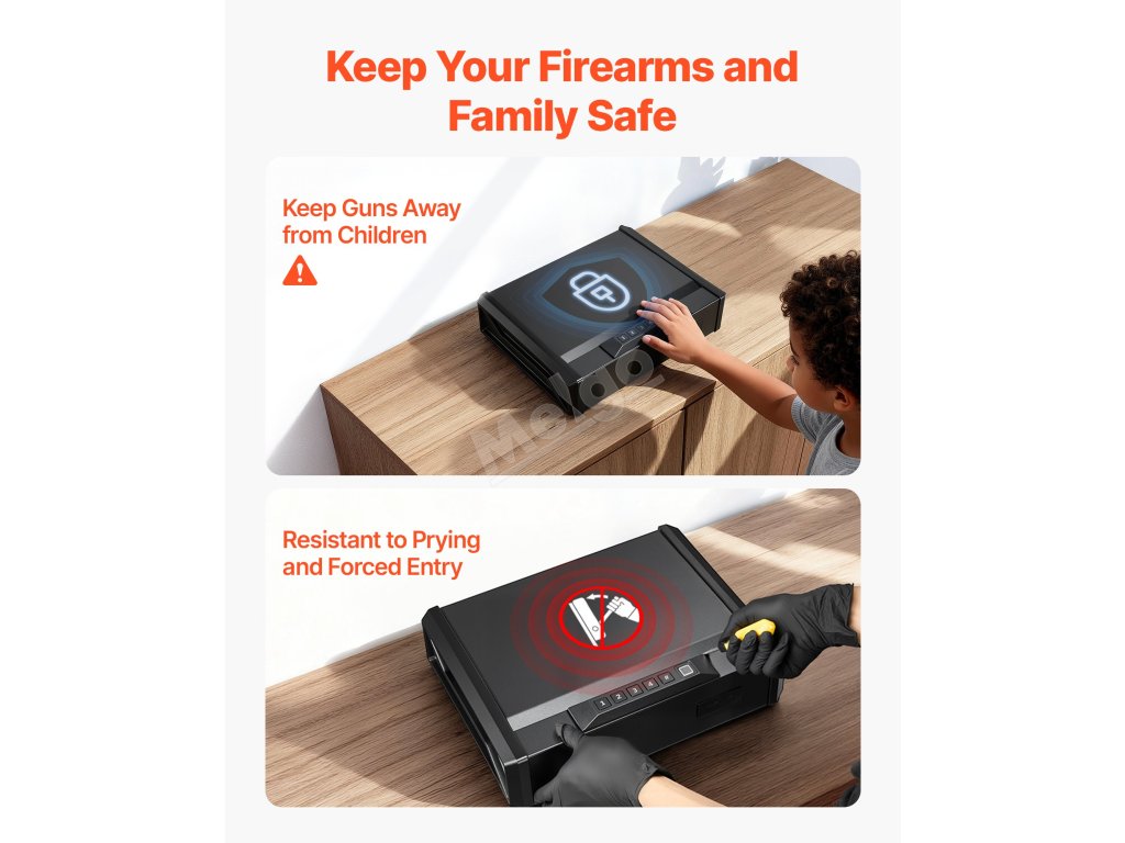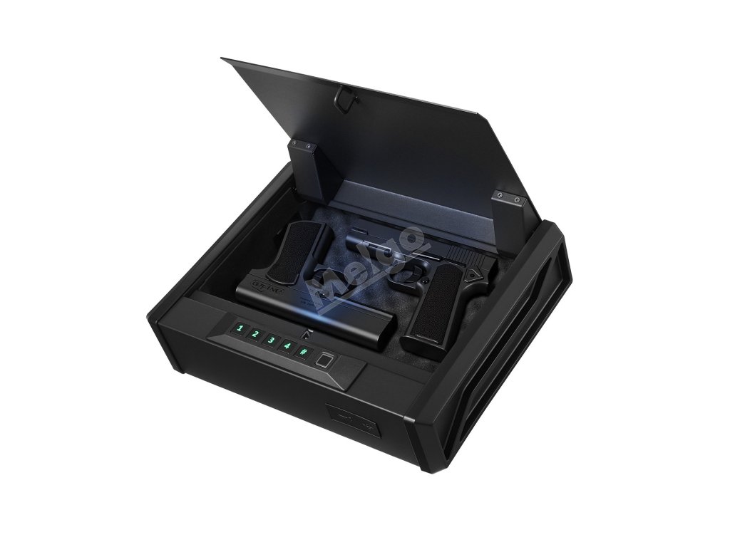 Tento trezor na zbraně zabezpečí váš domov a cennosti. Pojme 2 pistole a 2 zásobníky s přístupem pomocí otisku prstu, kódu a klíče. Noční světlo a tichý režim umožňují rychlé a diskrétní použití za zhoršených světelných podmínek.
