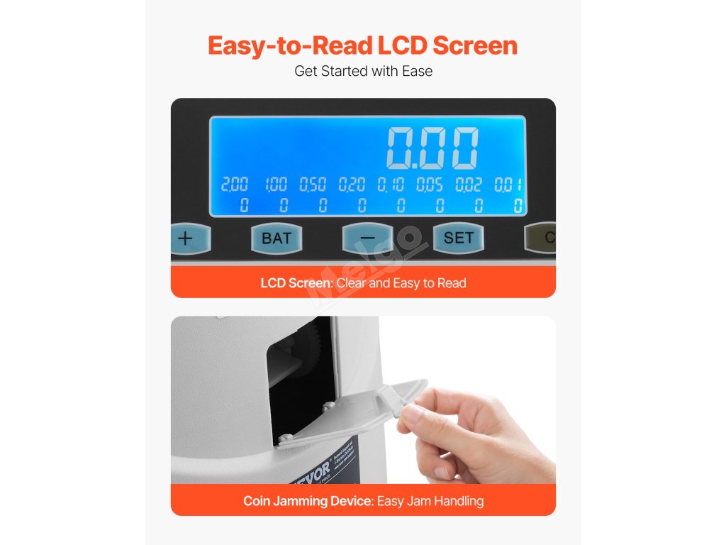 Na LED displeji se přehledně zobrazuje celkové množství a počet mincí, takže můžete snadno sledovat průběh třídění mincí. Díky tomu je vhodný pro statistiku a řízení.