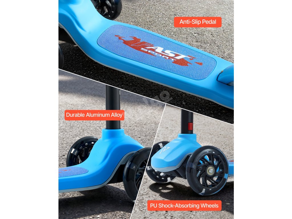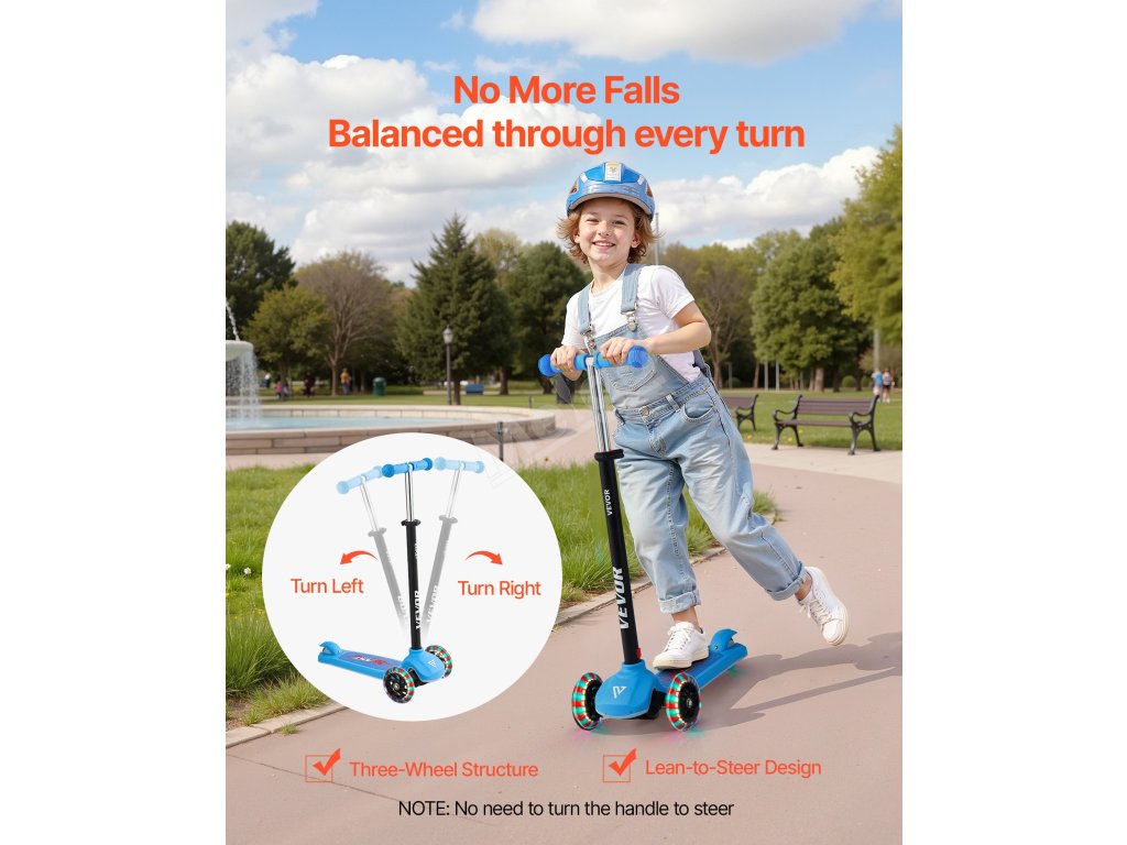 Tato dětská koloběžka je určena pro děti od 3 let a přináší aktivní zábavu. Její odolná konstrukce a velká kola zajišťují plynulou jízdu uvnitř i venku a poskytují rodičům klid. Naklápěcí řízení pomáhá rozvíjet rovnováhu a koordinaci a začátečníci zvládnou jízdu hned.