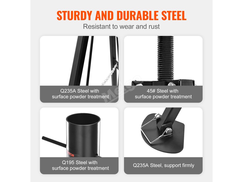 Pevná základna z oceli Q235A, nerezová miska z oceli Q195 a odolný šroub z oceli 45 zaručují dlouhou životnost.