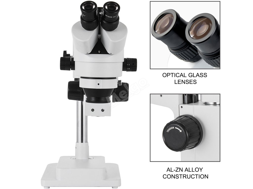 Stereomikroskop je vyroben z robustní, vysoce pevné slitiny Al-Zn a prvotřídních optických skleněných čoček, které poskytují obraz s vysokým rozlišením.