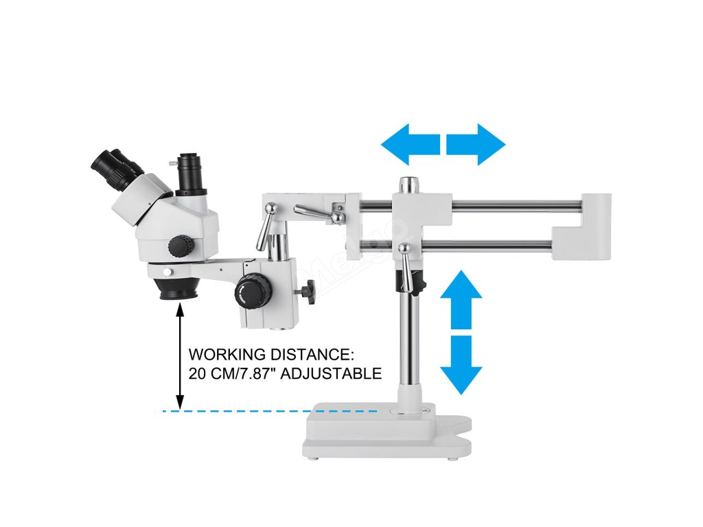 Stojan je výškově nastavitelný s pracovní vzdáleností 20 cm/7,87" a výložník se může pohybovat dopředu/dozadu, aby pokryl velkou pracovní plochu.
