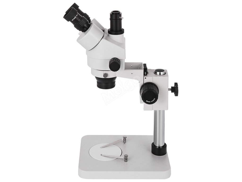 Trinokulární stereomikroskop 3.5×–90× 360° otočný sloupový stojan