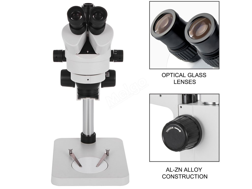 Stereomikroskop je vyroben z robustní, vysoce pevné slitiny Al-Zn a prvotřídních optických skleněných čoček, které poskytují obraz s vysokým rozlišením.