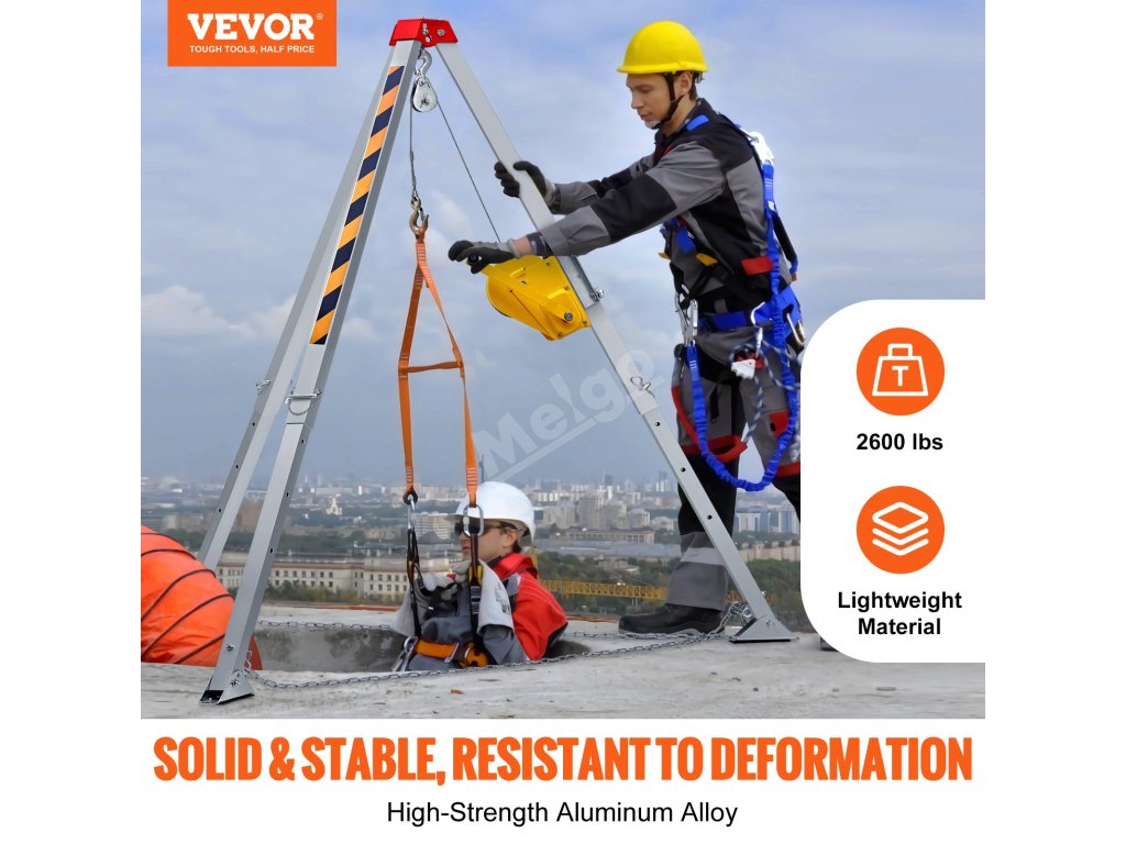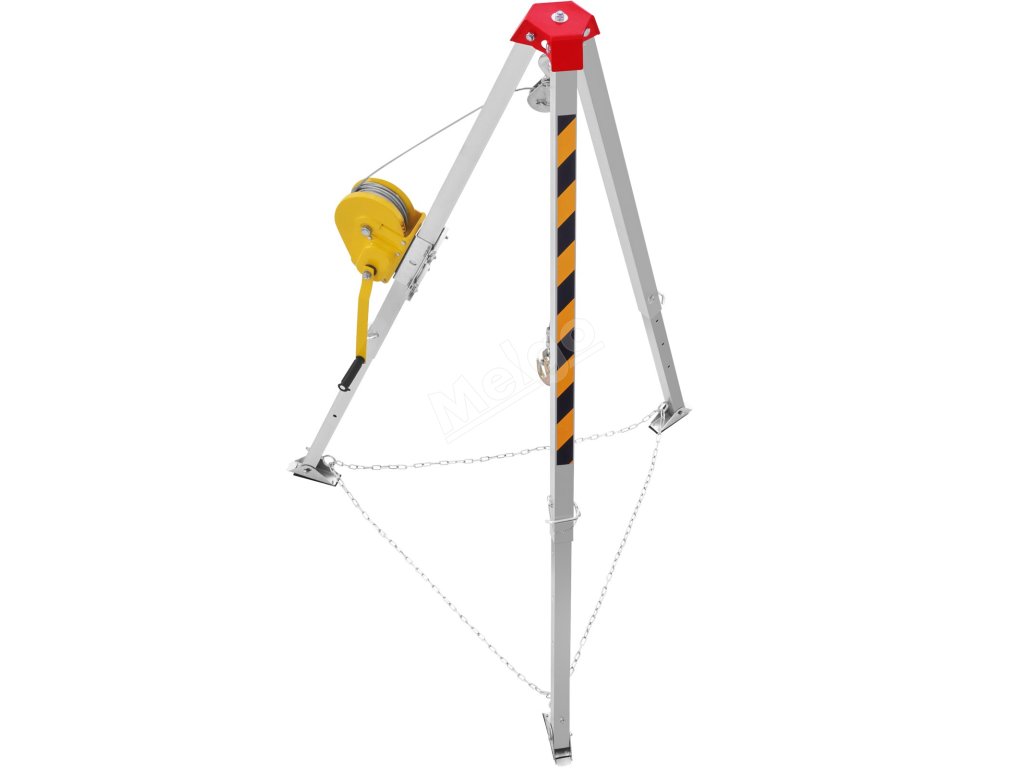 Záchranářský stativ má jednodílné kovové tělo, které je odolné jako hřebíky. Je vybaven kladkou ze slitiny oceli, takže jeho používání je bezproblémové. Lano z letecké oceli s ochranou proti otáčení je konstruováno tak, aby vydrželo i ty nejnáročnější práce.