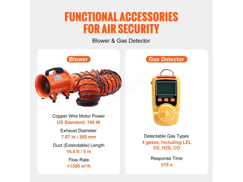 Naše sada pro práci ve stísněných prostorách obsahuje bezpečnostní postroj na celé tělo o nosnosti 350 liber pro komplexní ochranu a podporu. Pro větší klid duše je součástí dodávky také špičkový zachycovač pádu. Vše je úhledně zabaleno v úložné tašce pro snadné přenášení a skladování.