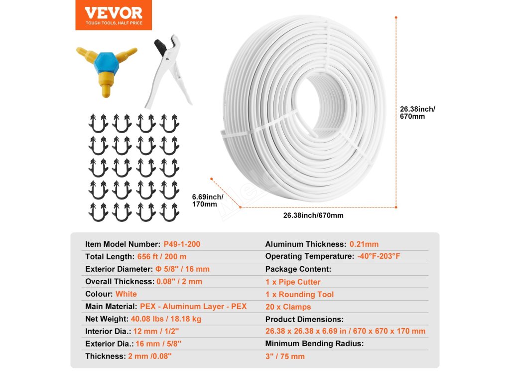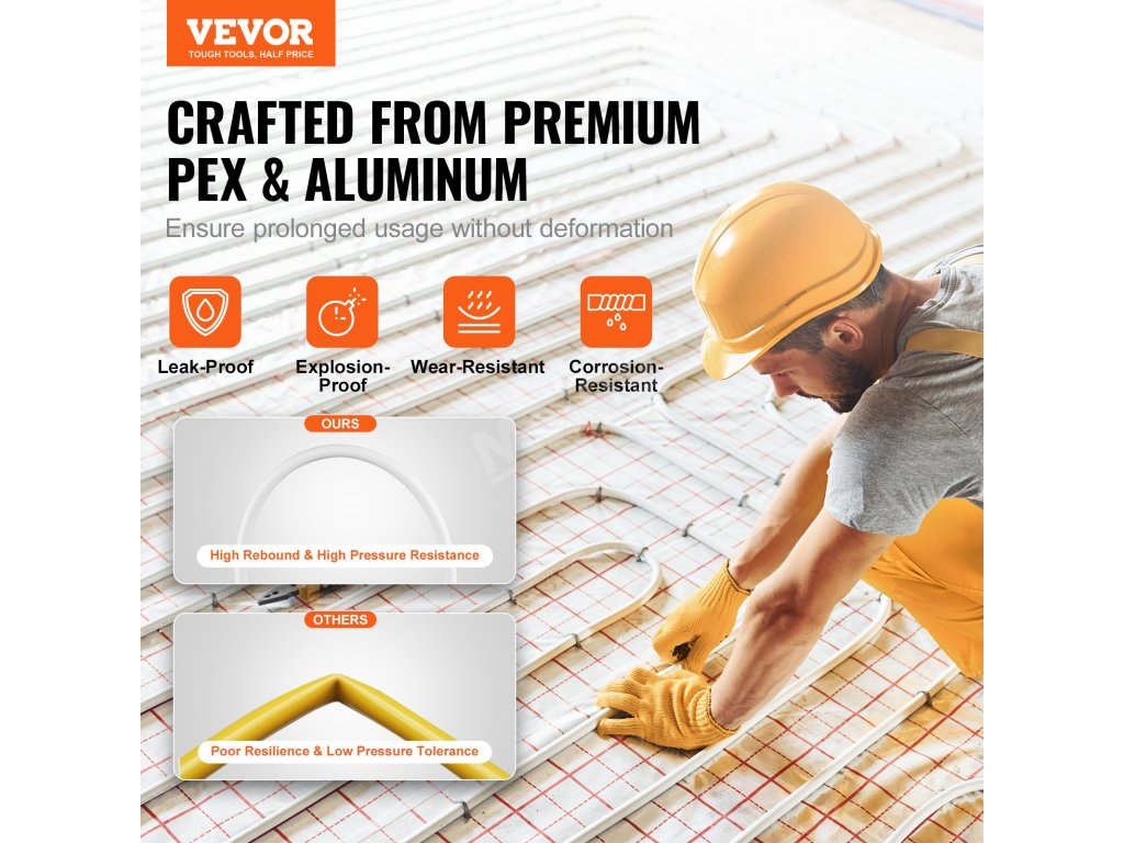 Trubky VEVOR AL PEX jsou vyrobeny z vysoce kvalitních materiálů PEX a hliníku, které odolávají teplotám vody od -40 °C do 95 °C. Lze ji instalovat s různými připojovacími systémy a je vhodná pro domácí i komerční použití. Bezkonkurenční flexibilita pro všestranné použití!