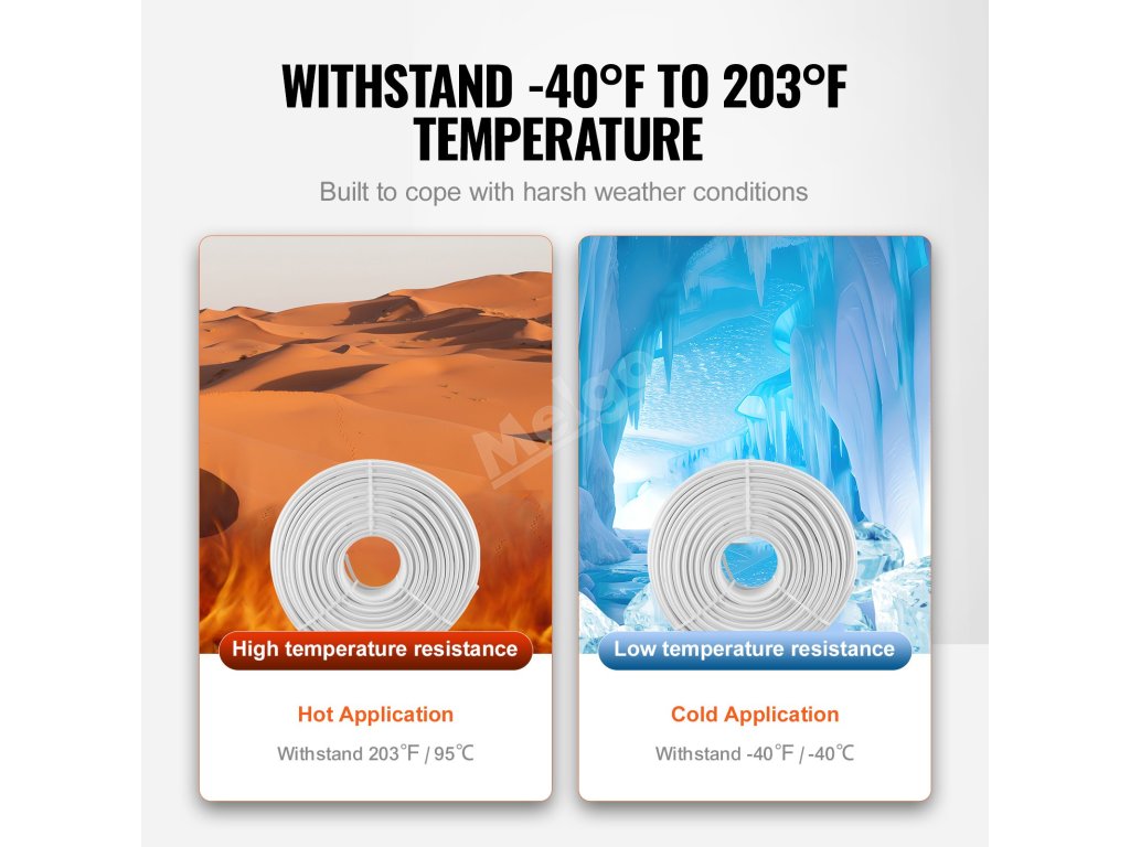 Trubky VEVOR AL PEX jsou vyrobeny z vysoce kvalitních materiálů PEX a hliníku, které odolávají teplotám vody od -40 °C do 95 °C. Lze ji instalovat s různými připojovacími systémy a je vhodná pro domácí i komerční použití. Bezkonkurenční flexibilita pro všestranné použití!