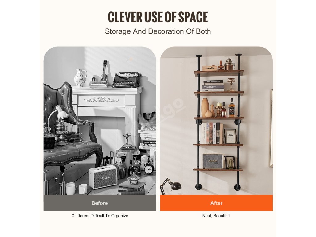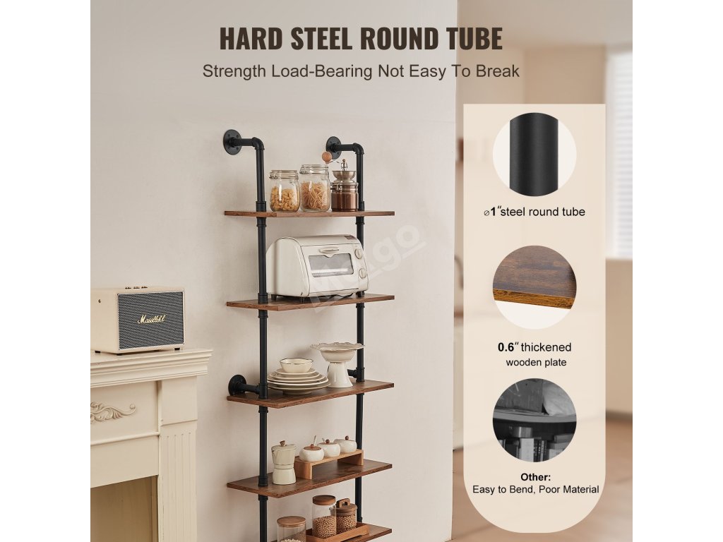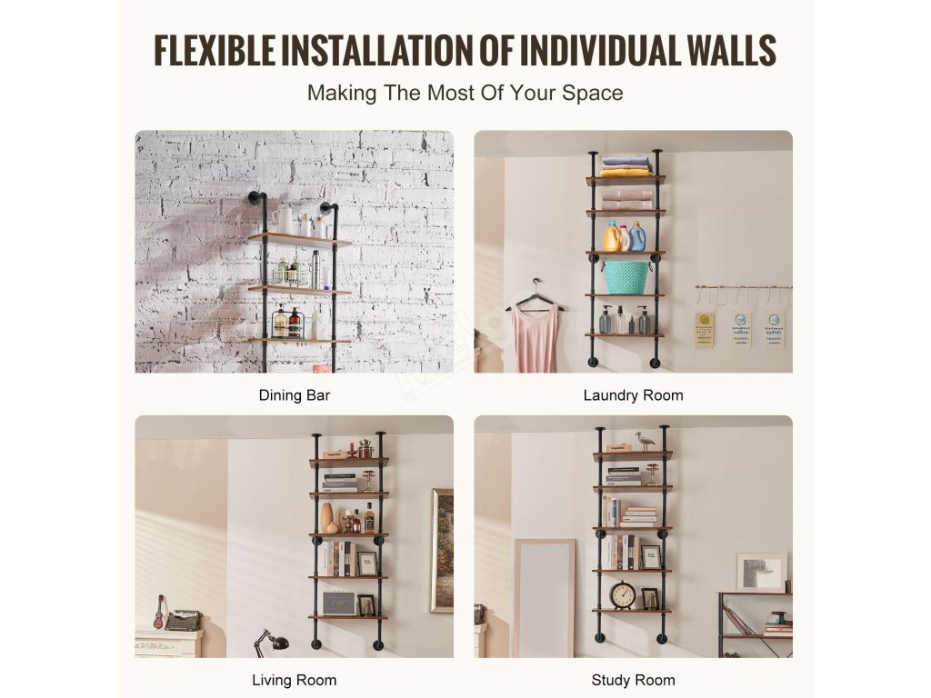 Tento kovový trubkový regál má flexibilní nástěnnou konstrukci, která umožňuje snadnou instalaci na různé stěny v kuchyních, obývacích pokojích a pracovnách, čímž maximalizuje prostor a řeší problémy s úložným prostorem.