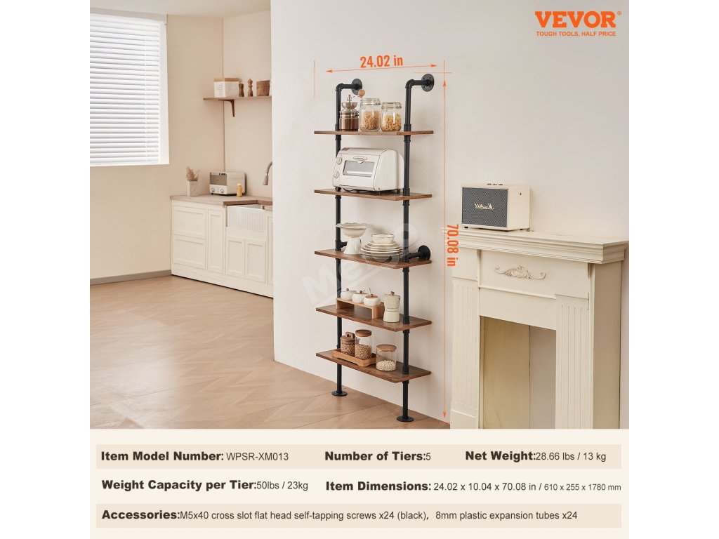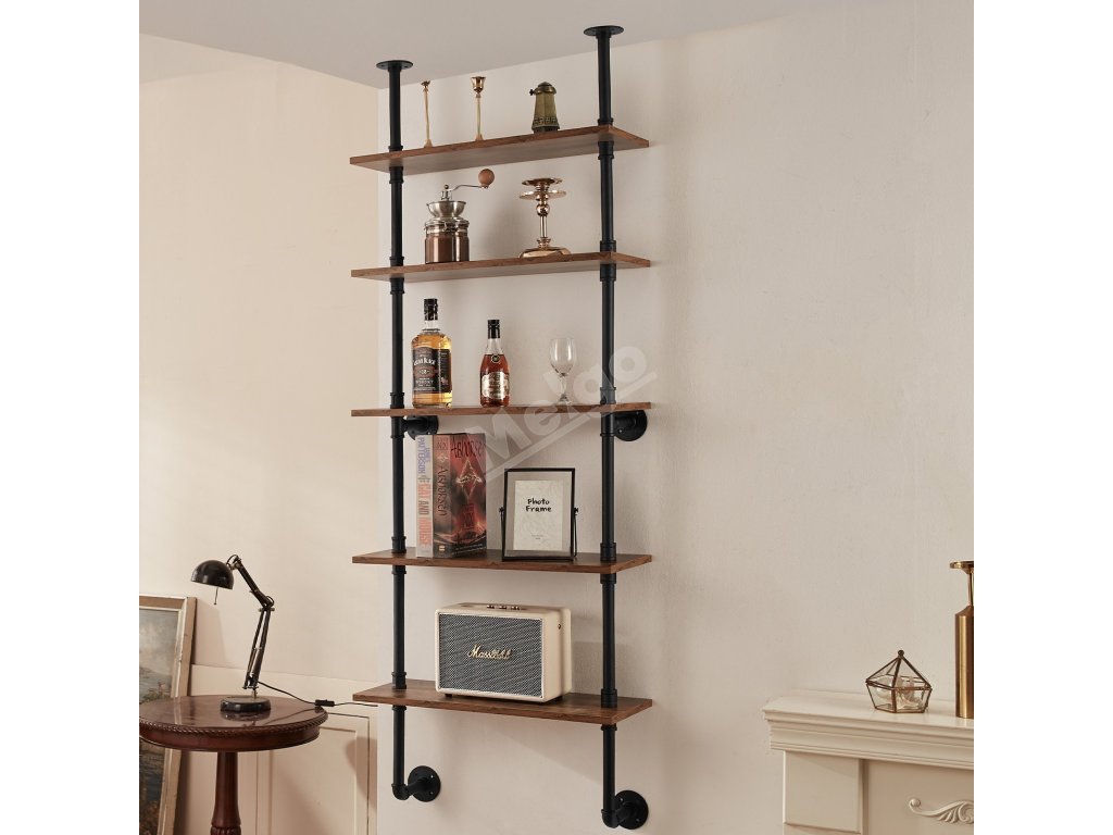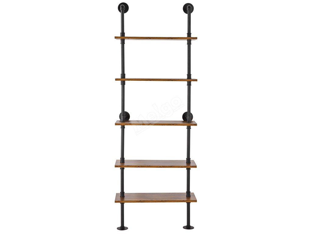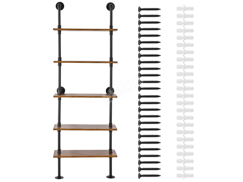 Trubková nástěnná police s 5 policemi 24×9.84in dřevo s černým kovem