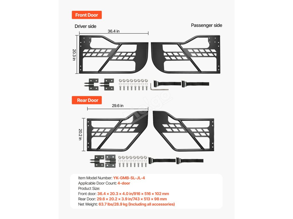 Trubkové 4dveřové dveře s panty a oe západkou pro JL/JT 2018–2024