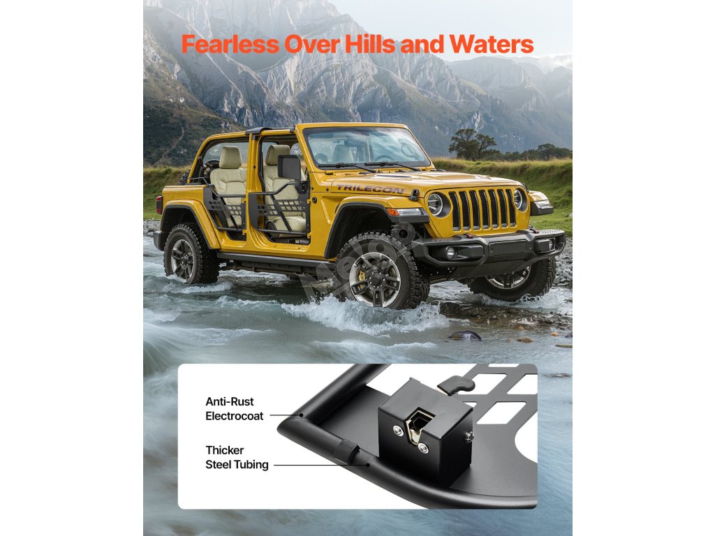Naše trubkové dveře Jeep jsou dokonalým vylepšením pro venkovní dobrodružství. Jsou navrženy tak, aby pasovaly na závěsy a západky z výroby, zlepšují viditelnost, zlepšují proudění vzduchu a zpříjemňují jízdu v terénu.