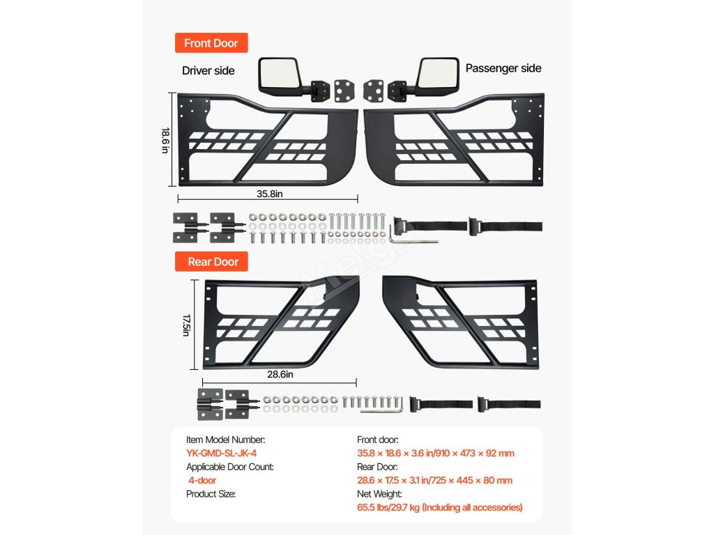 Trubkové dveře 4dveřové pro model JK 2007–2018, s DOT zrcadly