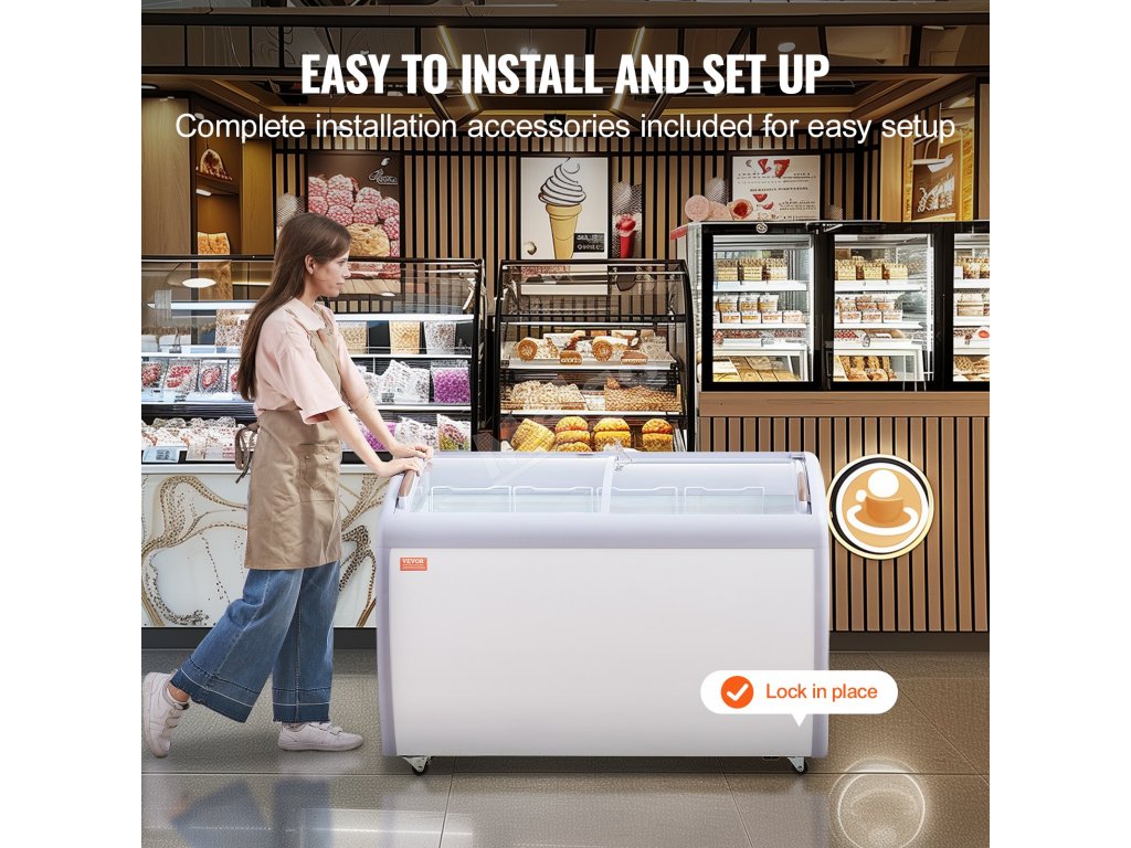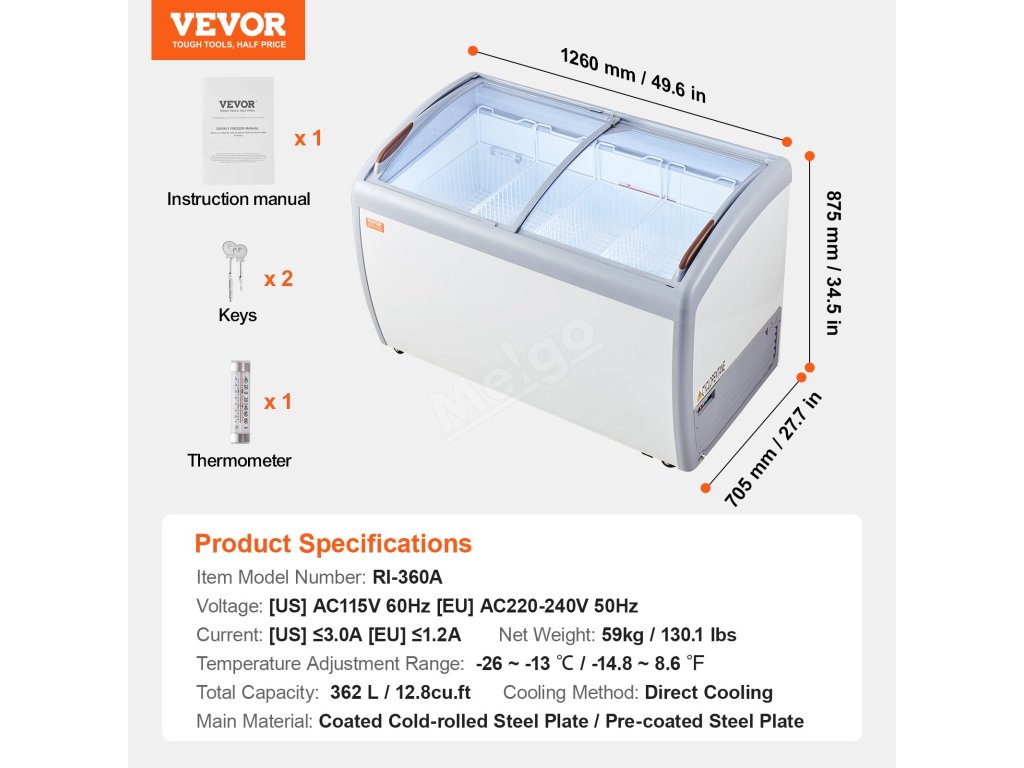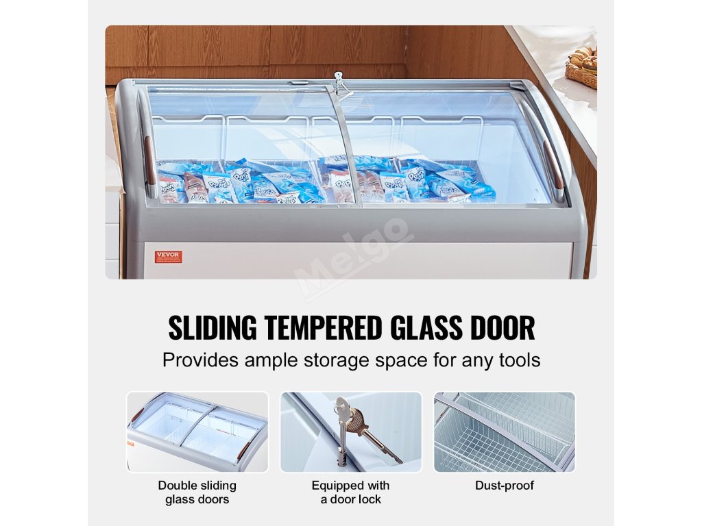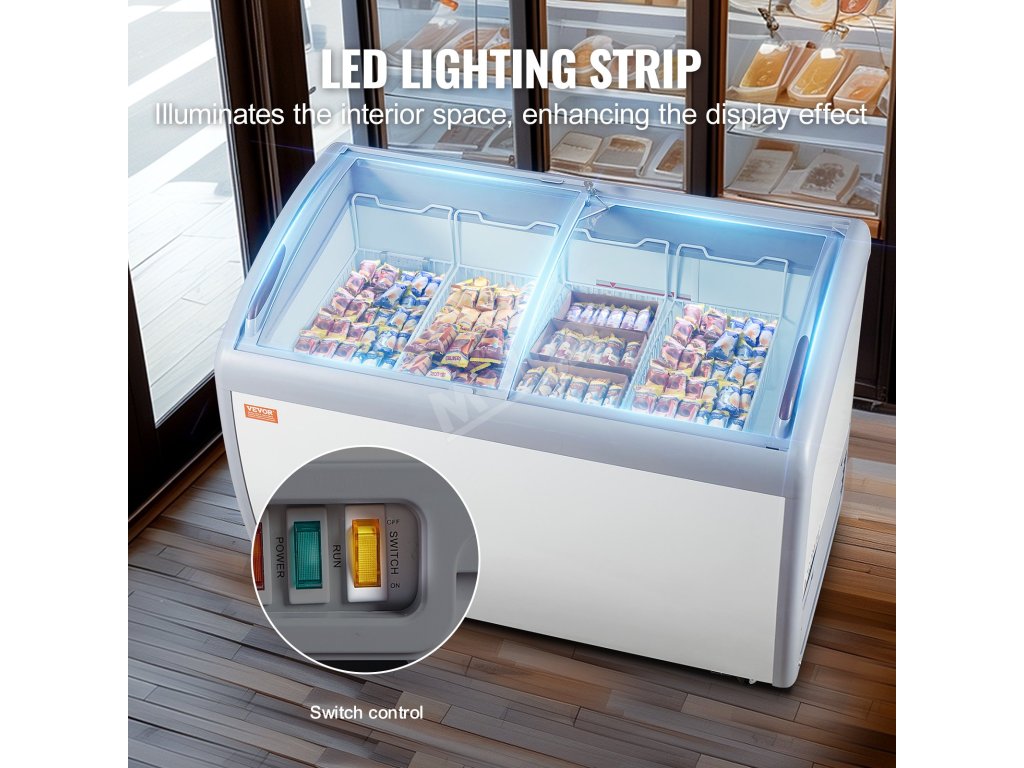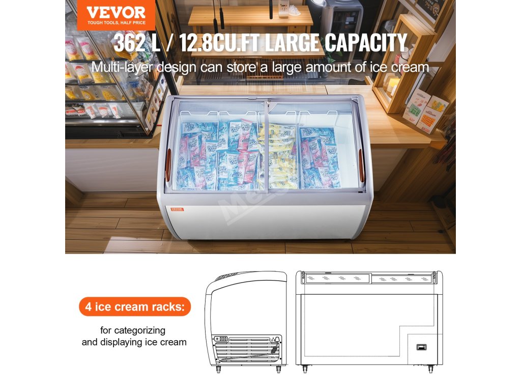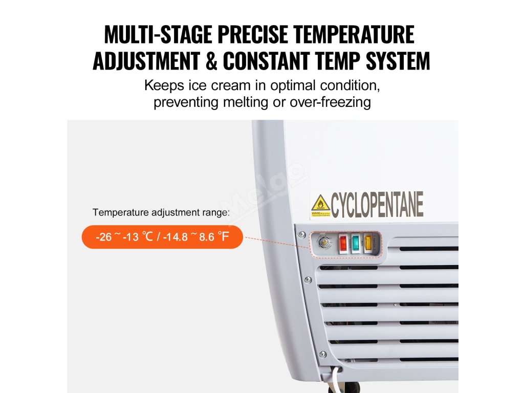 vitrína na zmrzlinu o objemu 362 l se 4 drátěnými koši, ve kterých lze vystavovat a skladovat různé příchutě zmrzliny. Tato mraznička je vybavena vícestupňovou regulací teploty a systémem konstantní teploty, který je energeticky úsporný a účinný.