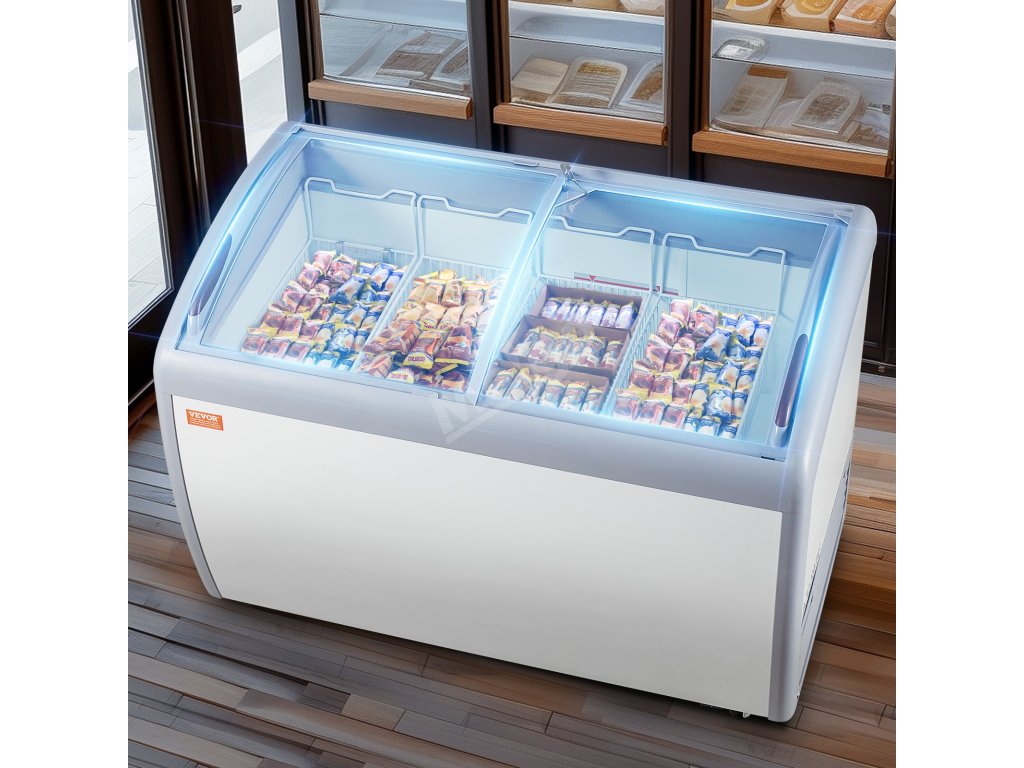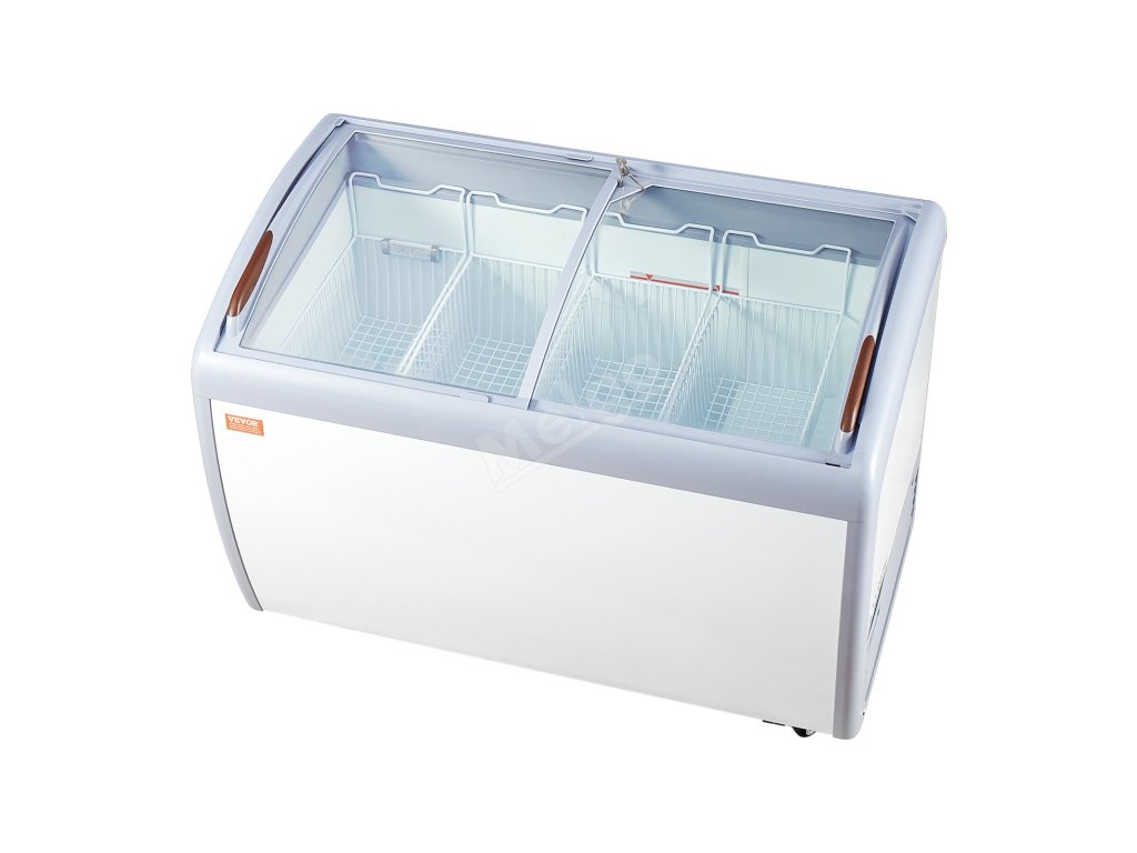 Truhlicový mrazák na zmrzlinu 362 L, 2 posuvná skla, 4 koše, kolečka