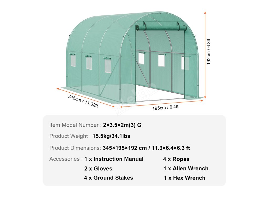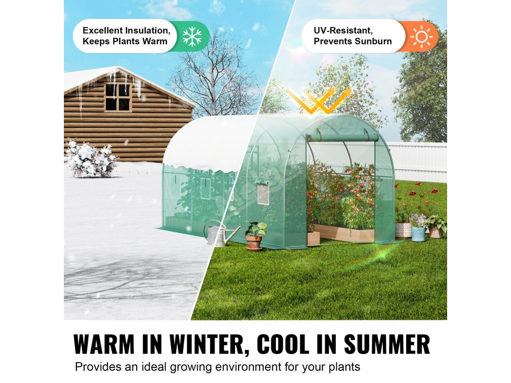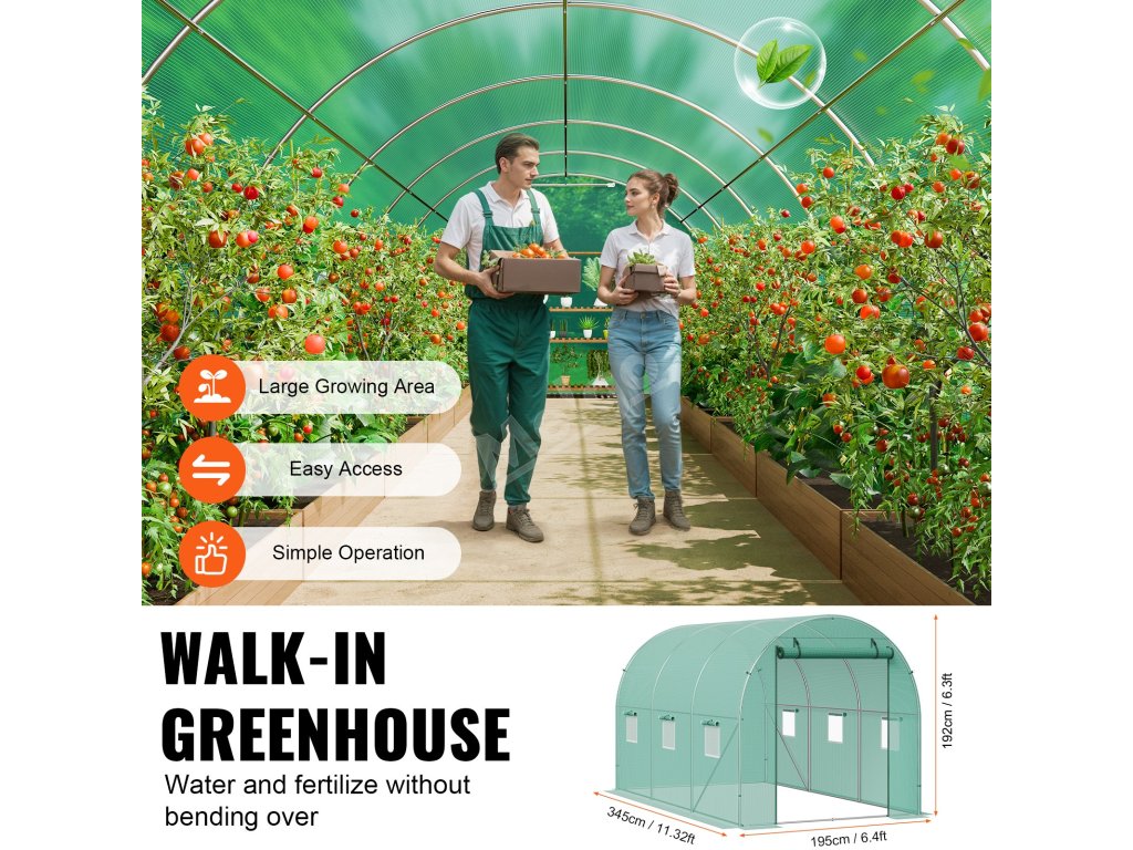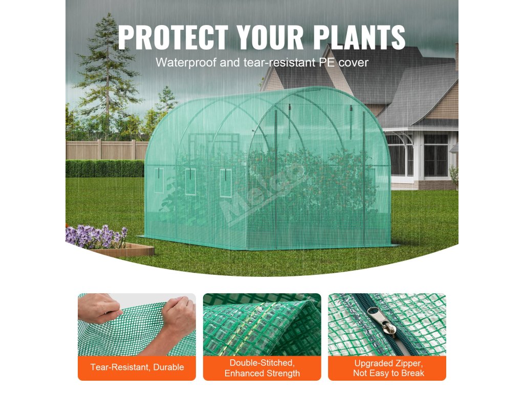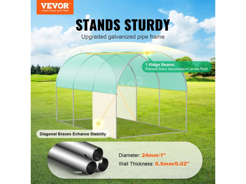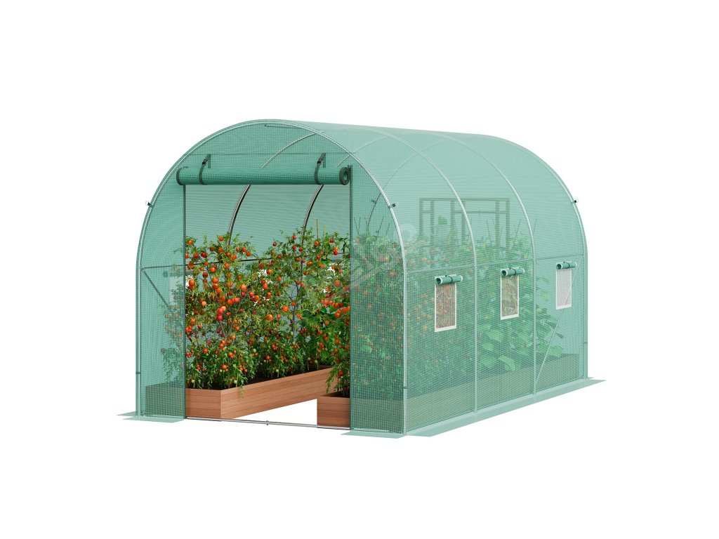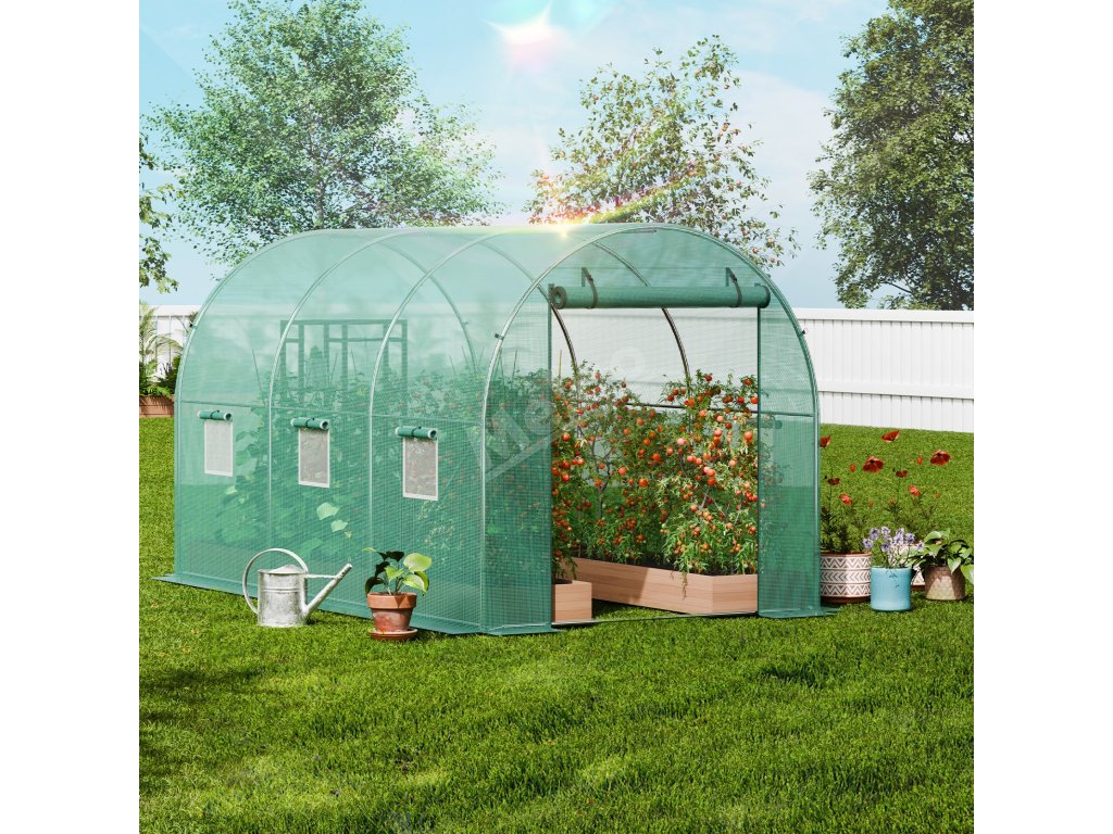 Tento tunelový skleník je zkonstruován z vyztužených pozinkovaných ocelových trubek a odolného PE krytu a poskytuje bezkonkurenční pevnost a odolnost. Jeho prostorný interiér vyhovuje různým potřebám výsadby a umožňuje vašim rostlinám prospívat v příjemném prostředí.