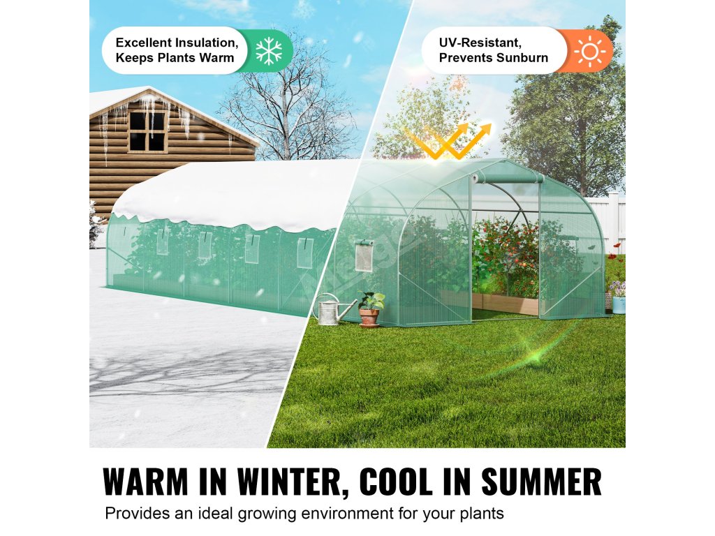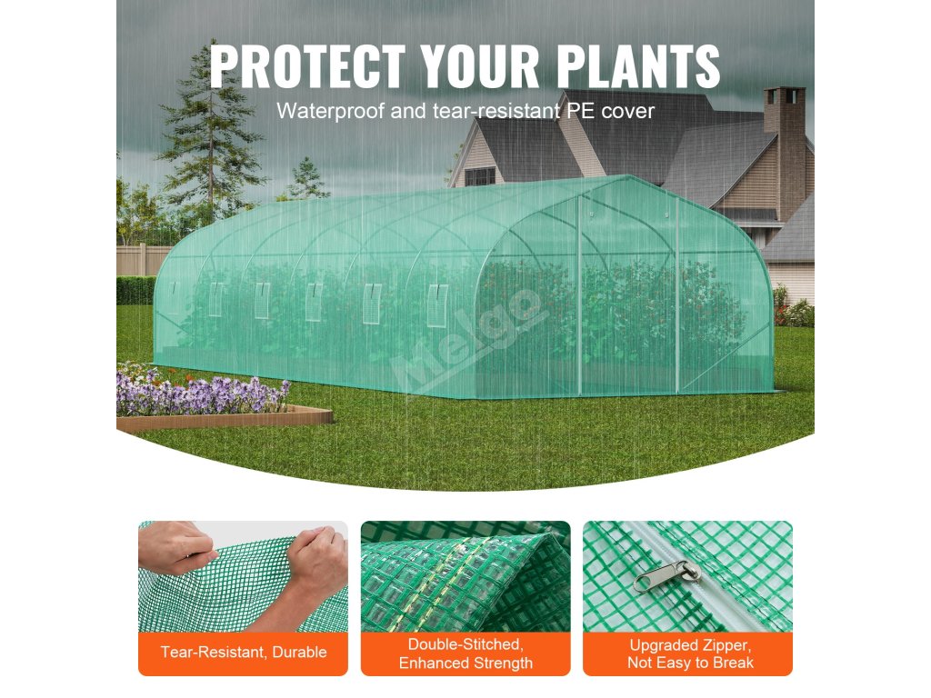 Vrchní konstrukce a zesílený PE potah zajišťují bezkonkurenční pevnost a odolnost. Prostorný interiér splňuje rozmanité potřeby rostlin a umožňuje vašim rostlinám prospívat v příjemném prostředí.