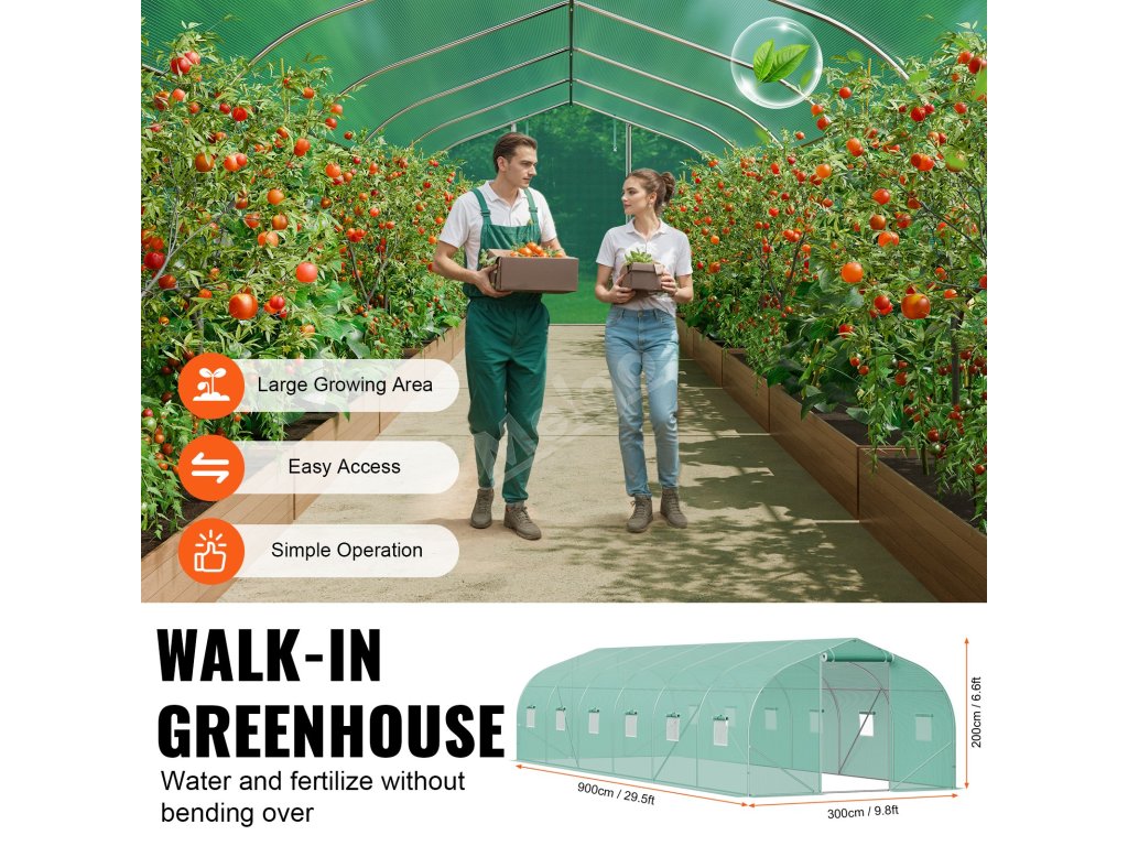 Tunelový skleník 29.5×9.8×6.6 ft, pozinkovaný rám, pe kryt, 12 oken