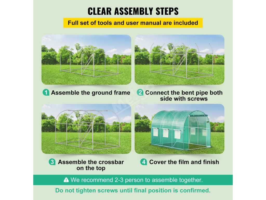 Instalace naší sady obručového skleníku je bezproblémová díky našemu přehlednému a snadno čitelnému návodu k použití. Stačí najít správné díly a zkombinovat je, pak bude proces instalace dokončen.