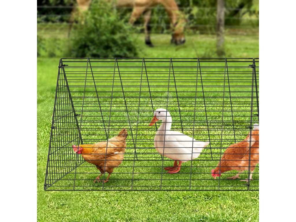 Husté a vyztužené mobilní výběhy pro kuřata zvyšují stabilitu a zabraňují vstupu predátorů, jako jsou psi, kojoti, jestřábi a lišky, a zajišťují tak bezpečnost vaší drůbeže.