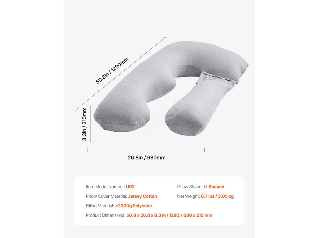 U-tvarovaný celotělový těhotenský polštář, prodyšný, snímatelný potah